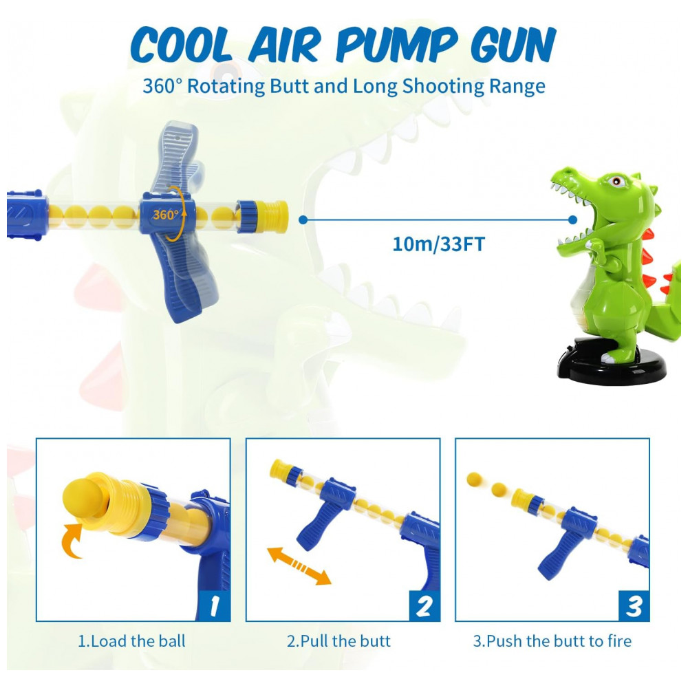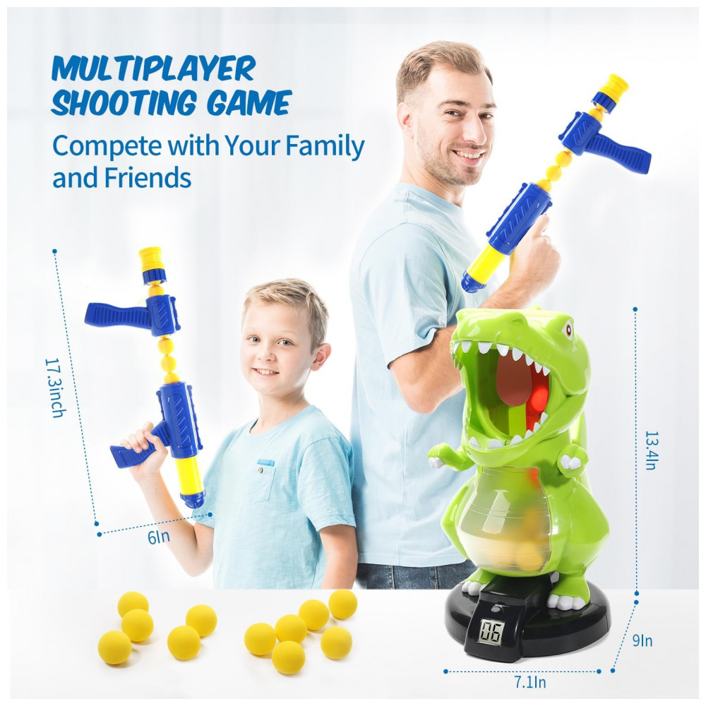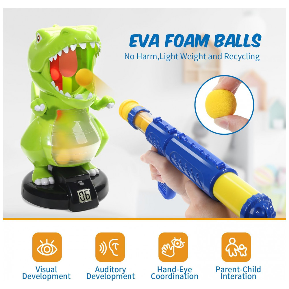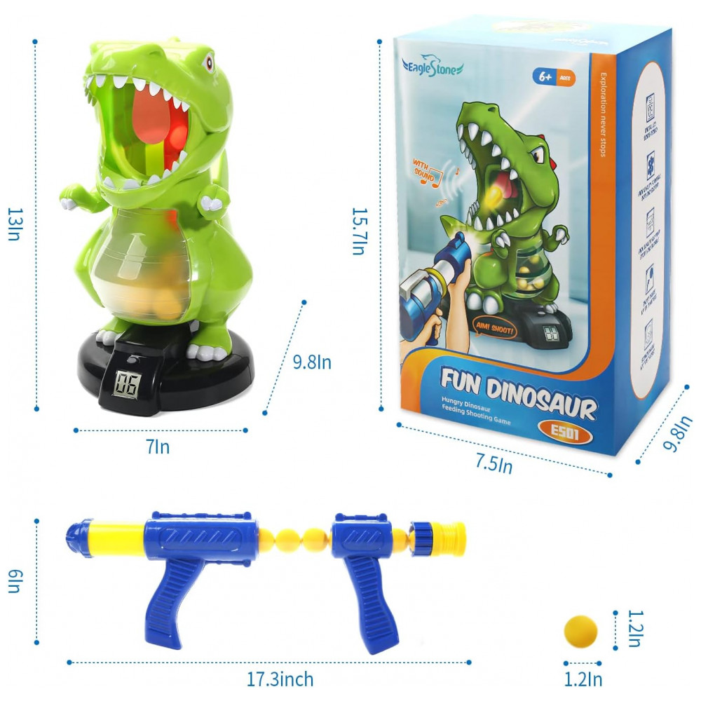 EagleStone Brinquedo de Tiro Dinossauro com Canhão de Ar 24 Bolinhas de Espuma Jogo Eletrônico com Placar LCD Som e Bomba Manual – Presente Ideal