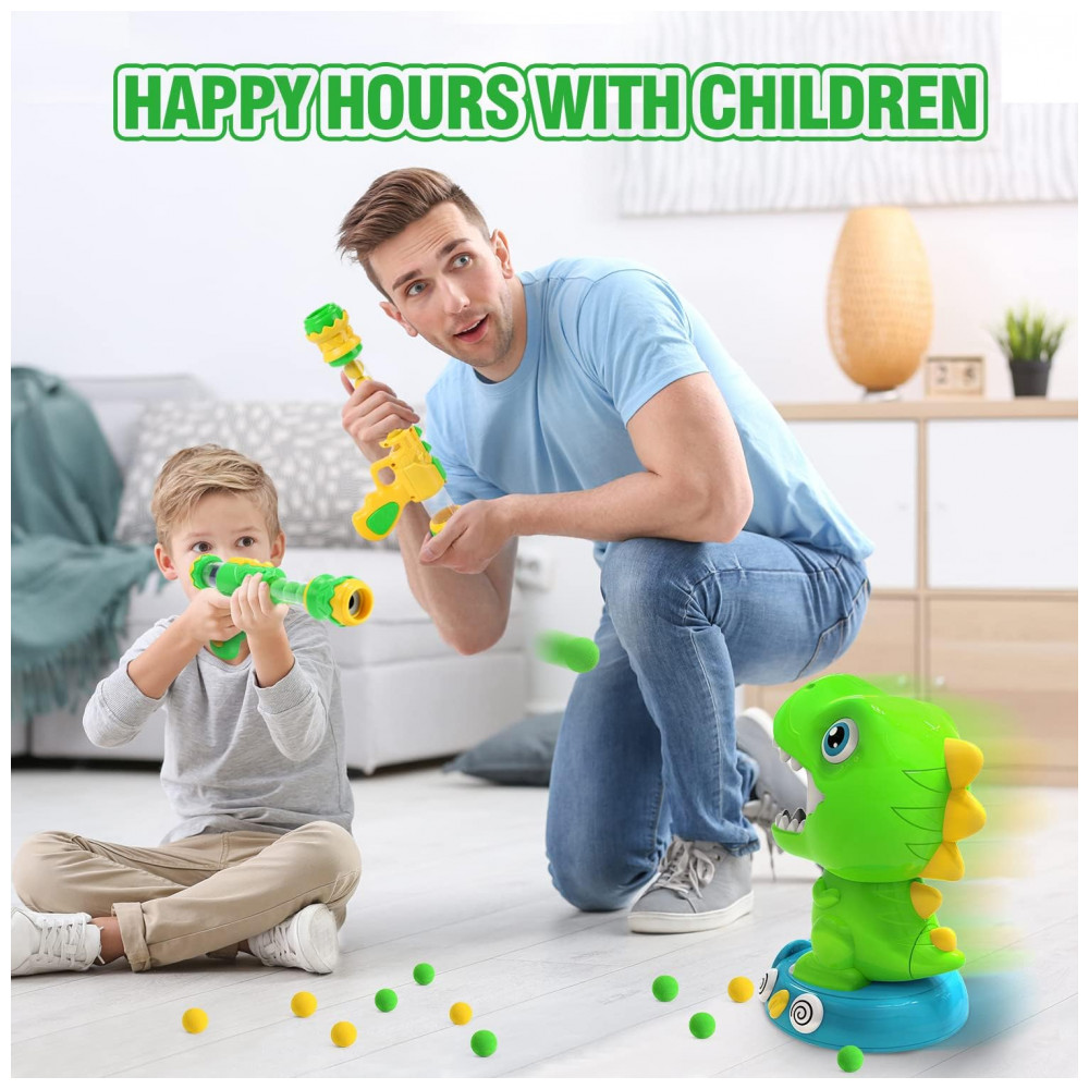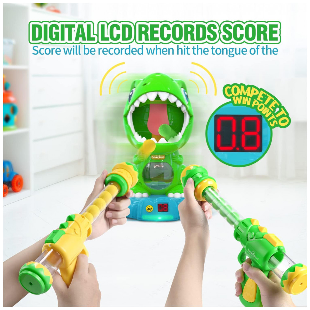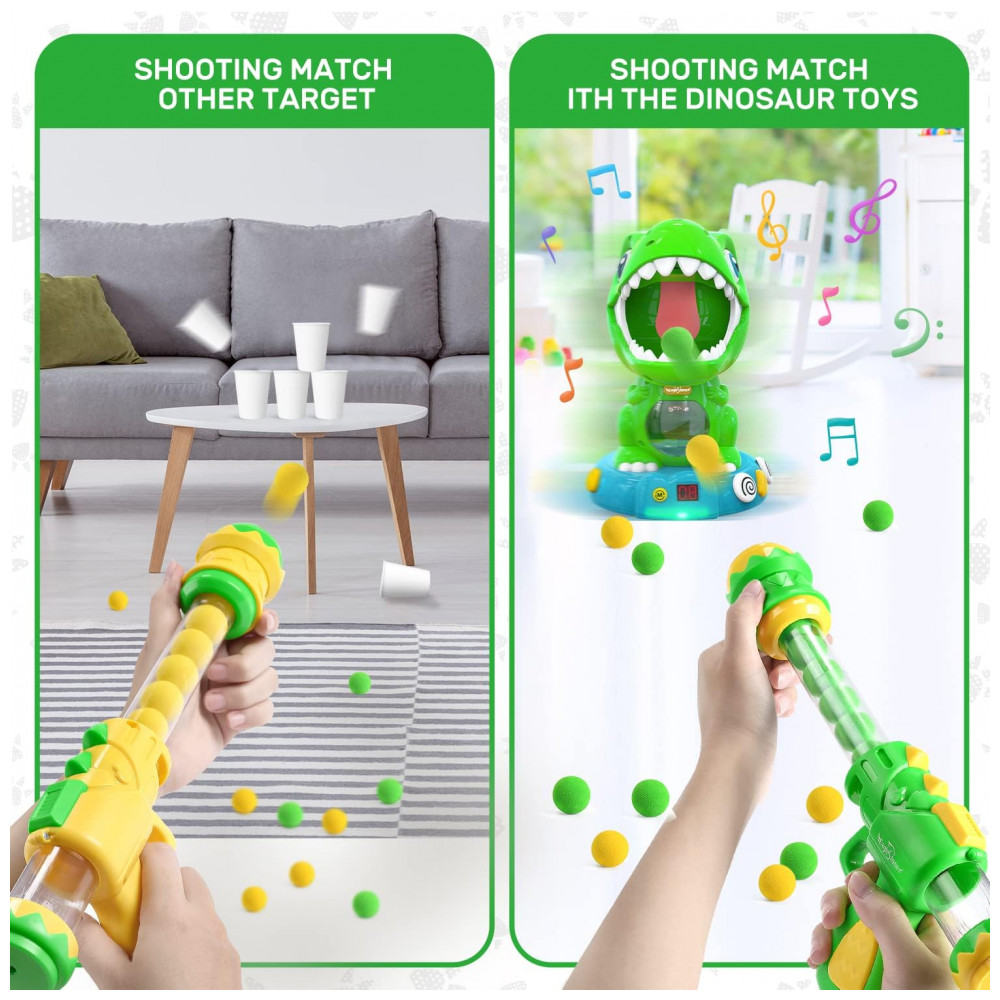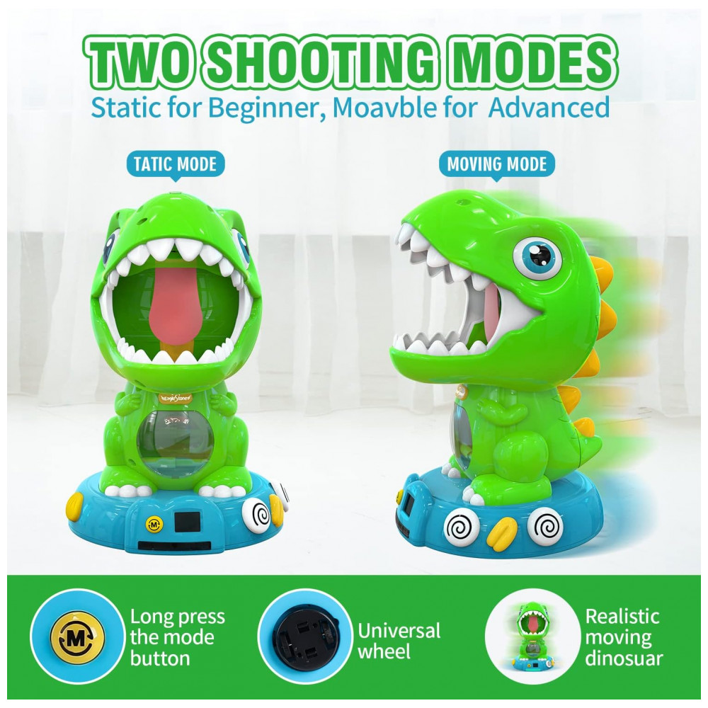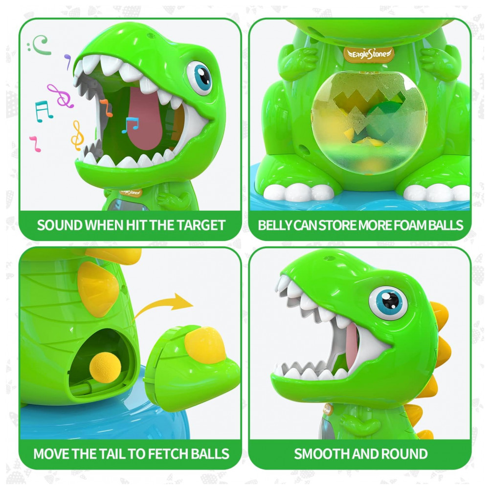 EagleStone Brinquedo Dinossauro Móvel com Jogo Eletrônico de Tiro e Pistolas 48 Bolinhas de Espuma para Crianças