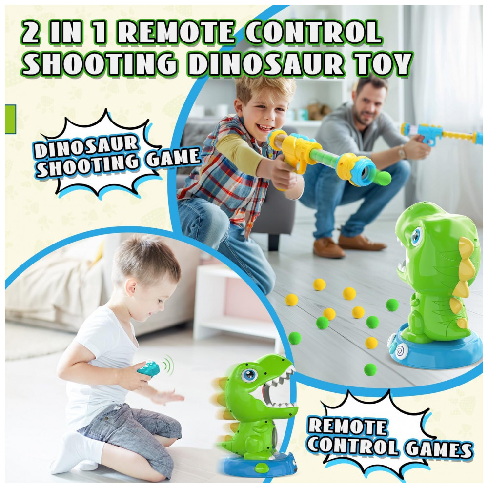 Descubra a emoção do jogo dinâmico com o Dinossauro de Tiro Controlado por Controle Remoto da EagleStone, criado especialmente para crianças a partir de 6 anos! Este brinquedo oferece três modos de jogo únicos que garantem diversão e desafio: no Modo Estático, é mais fácil mirar e acertar o alvo, perfeito para iniciantes; no Modo Controle Remoto, o dinossauro responde a comandos para avançar, recuar e virar, proporcionando uma experiência realista e interativa; e no Modo Demonstração Automática, o dinossauro evita obstáculos automaticamente, tornando cada disparo uma aventura emocionante. O sistema eletrônico de pontuação acompanha cada acerto na língua do dinossauro, exibindo a pontuação em uma tela LED e ativando efeitos especiais de fumaça e luz para celebrar cada sucesso. Após cinco acertos, o dinossauro vibra com uma comemoração que incentiva a autoconfiança da criança. O conjunto completo inclui o alvo dinossauro automático, controle remoto 2.4GHz para controle suave e responsivo, bateria recarregável de alta duração, duas armas de ação por bomba com 48 munições de EVA macias, óculos de proteção e uma pipeta. Ideal para crianças de 5 a 8 anos, este brinquedo é perfeito para festas, aniversários, Natal e outras ocasiões, promovendo a coordenação motora e a habilidade de mira. Divirta-se tanto em ambientes internos quanto externos, estimulando a concentração e o aprendizado através do jogo. Com bateria recarregável de 500mAh, a diversão dura horas, proporcionando momentos inesquecíveis para meninos e meninas.