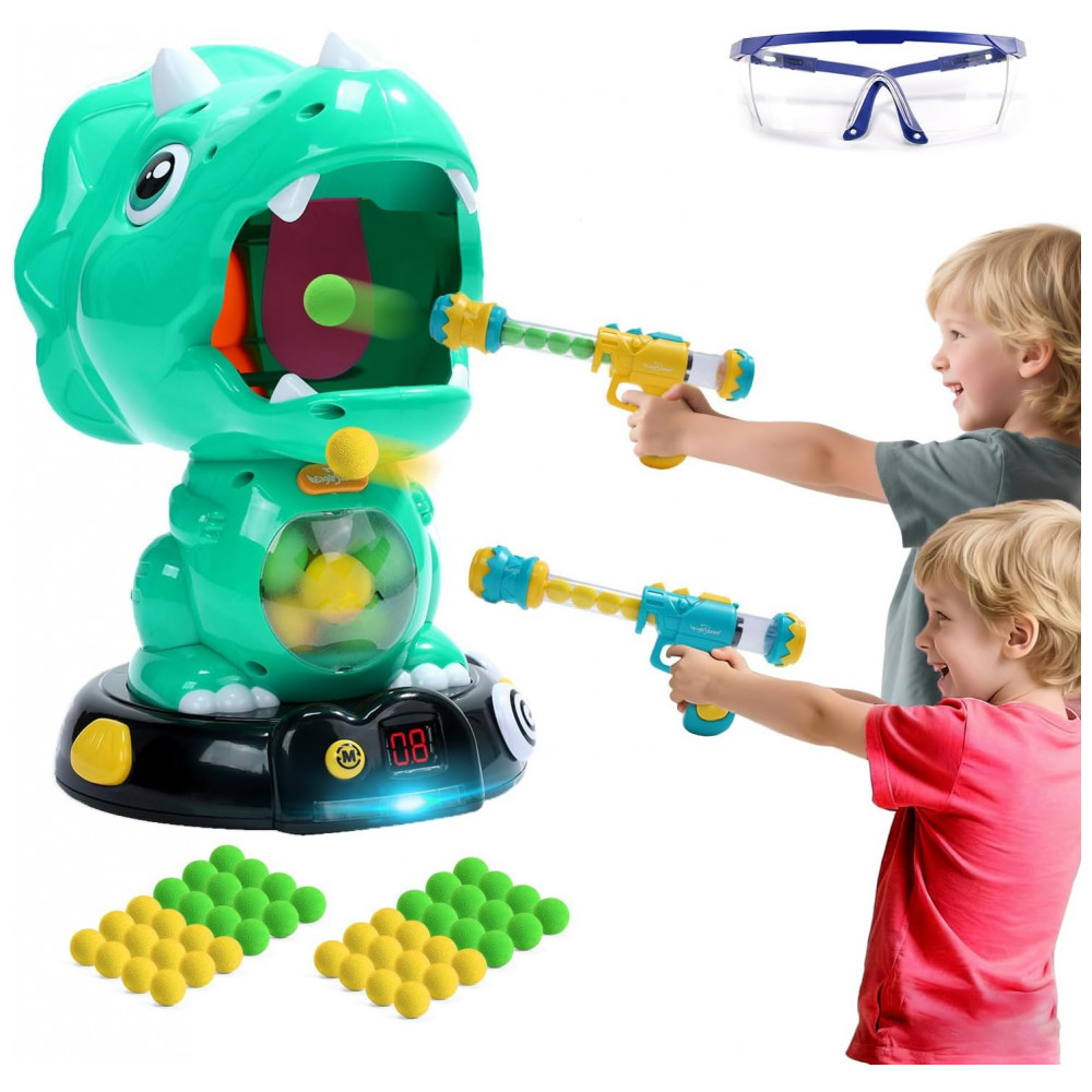 Experiência Imersiva com Dinossauros: Entre em um mundo de dinossauros realistas com a Aventura de Tiro Triangular Terrors da EagleStone. Com o formato de um feroz dinossauro tricerátops, este brinquedo transporta crianças para uma era antiga, proporcionando uma emocionante aventura de tiro! Modo Dinâmico Inovador: O Jogo de Tiro Roaring Triassic Dino oferece 2 modos de operação: modo estático e modo dinâmico. Equipado com rodas omnidirecionais inteligentes, ele evita obstáculos com facilidade, adicionando uma camada extra de desafio. É um jogo de tiro com modo dinâmico raro no mercado! Kit Multifuncional de Jogo de Tiro: Com 48 bolas de espuma EVA e 2 armas de bomba de ar aprimoradas, o alvo Roaring Triassic Dino entrega muito mais que diversão com armas de espuma, proporcionando uma experiência diversificada de tiro. Brinquedo Seguro para Crianças: A segurança do seu filho é nossa prioridade máxima. As armas de bomba de ar são feitas de material ABS ecológico e o design em volta garante uma experiência segura de tiro. As bolas leves e inofensivas de espuma EVA são coletadas dentro da barriga do dinossauro, facilitando a reutilização sem causar danos a ninguém ou ao ambiente. Estimule a Diversão Competitiva: O display digital LCD registra os pontos, e a cada bola de espuma que atinge a língua do dinossauro Triássico, um som é acionado e 1 ponto é adicionado ao placar. Ideal para competições multiplayer, traz um jogo de tiro estilo carnaval que diverte crianças em festas e encontros! Presente Ideal para Natal e outras ocasiões especiais.