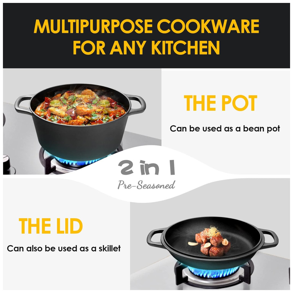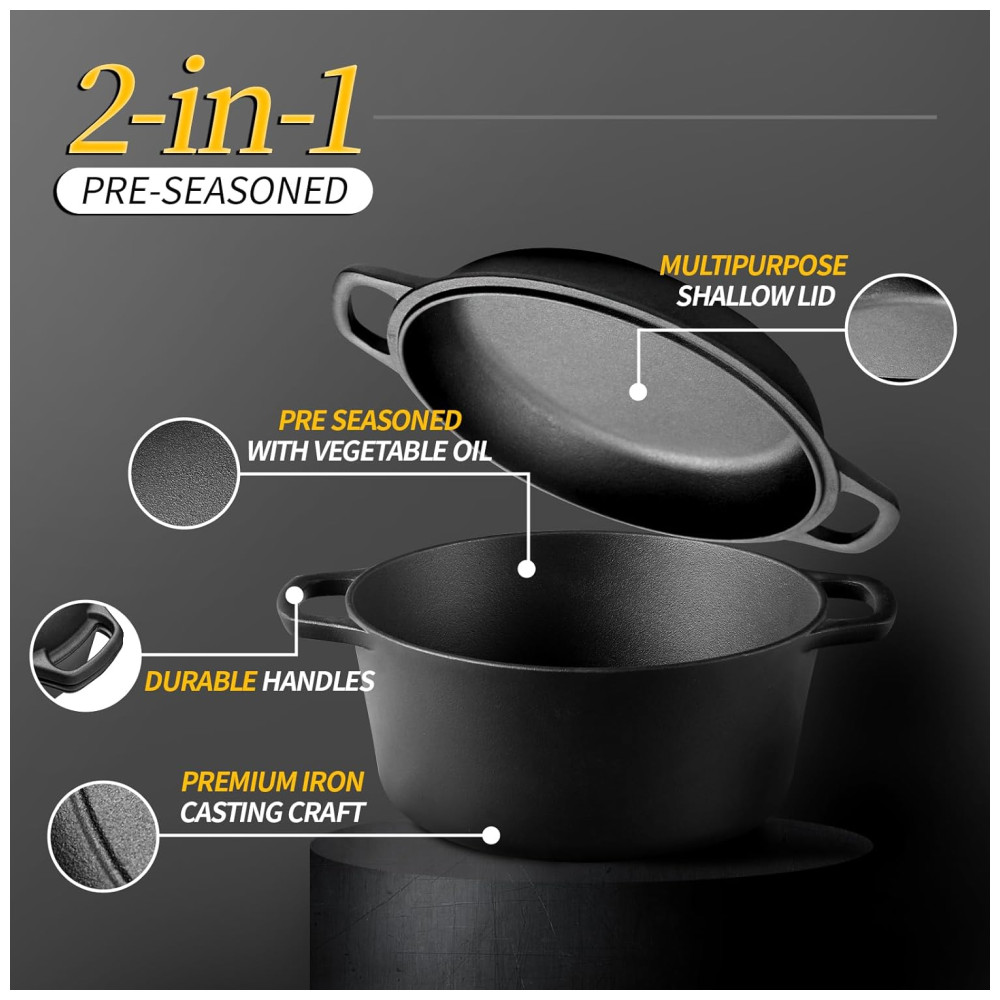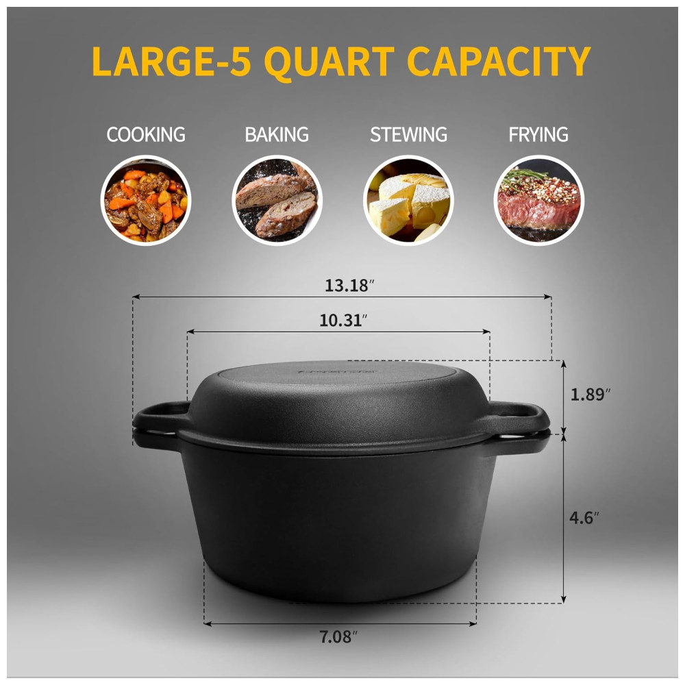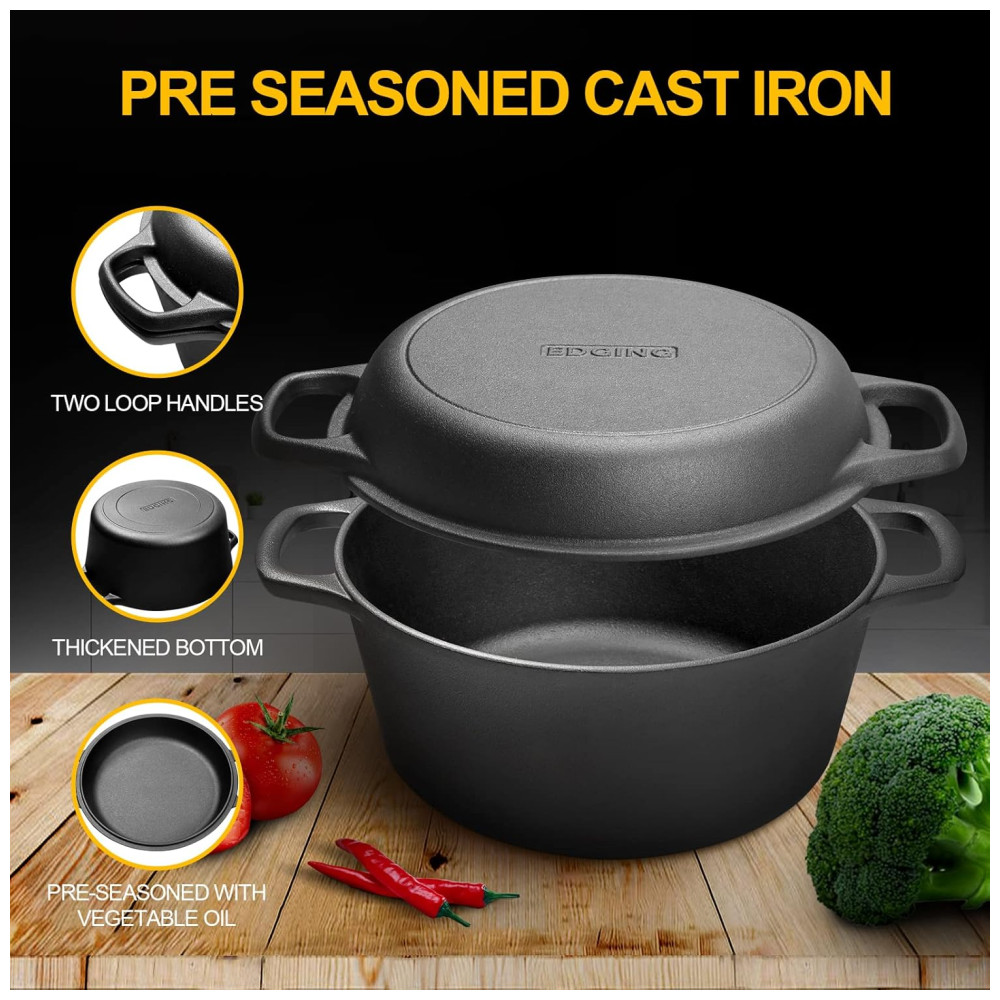 EDGING CASTING Panela de Ferro Fundido 2 em 1 Pre Preparada 5 L de Capacidade