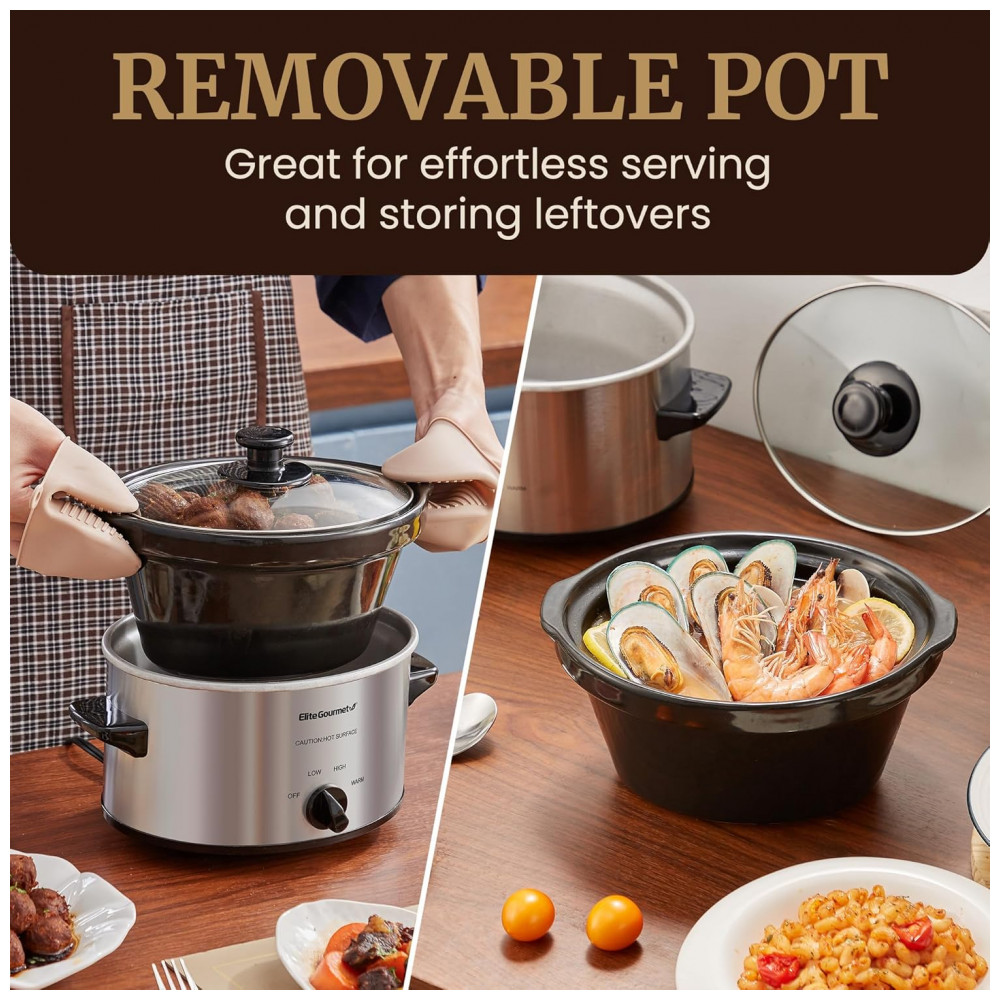 Elite Gourmet MST 275XS Panela Elétrica Antiaderente 2L Multifuncional com Controle de Temperatura 110V 120W