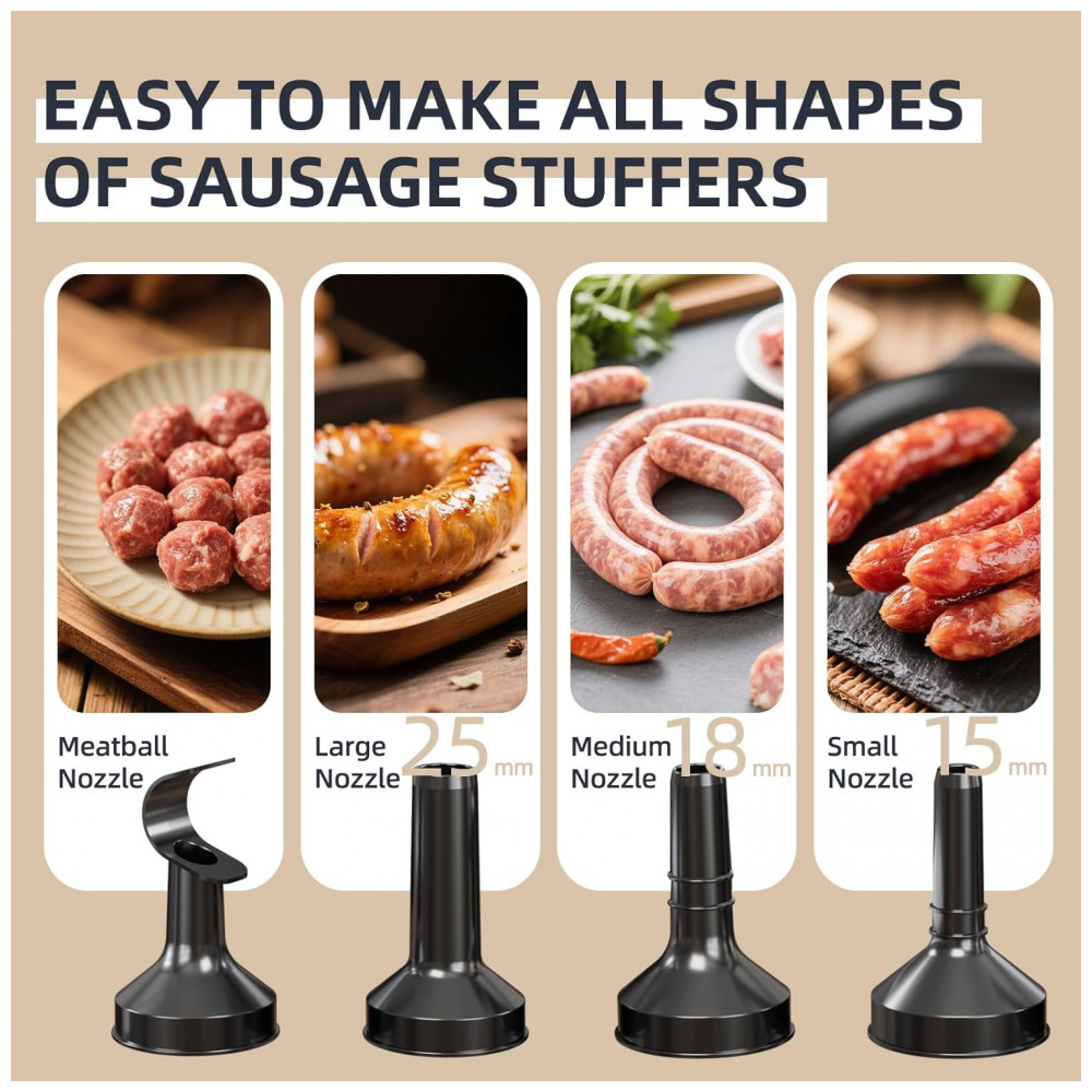 Embutidora Elétrica de Linguiças Máquina Automática de Encher Carne com 3 Tubos de Enchimento e 1 Tubo para Almôndegas keerain