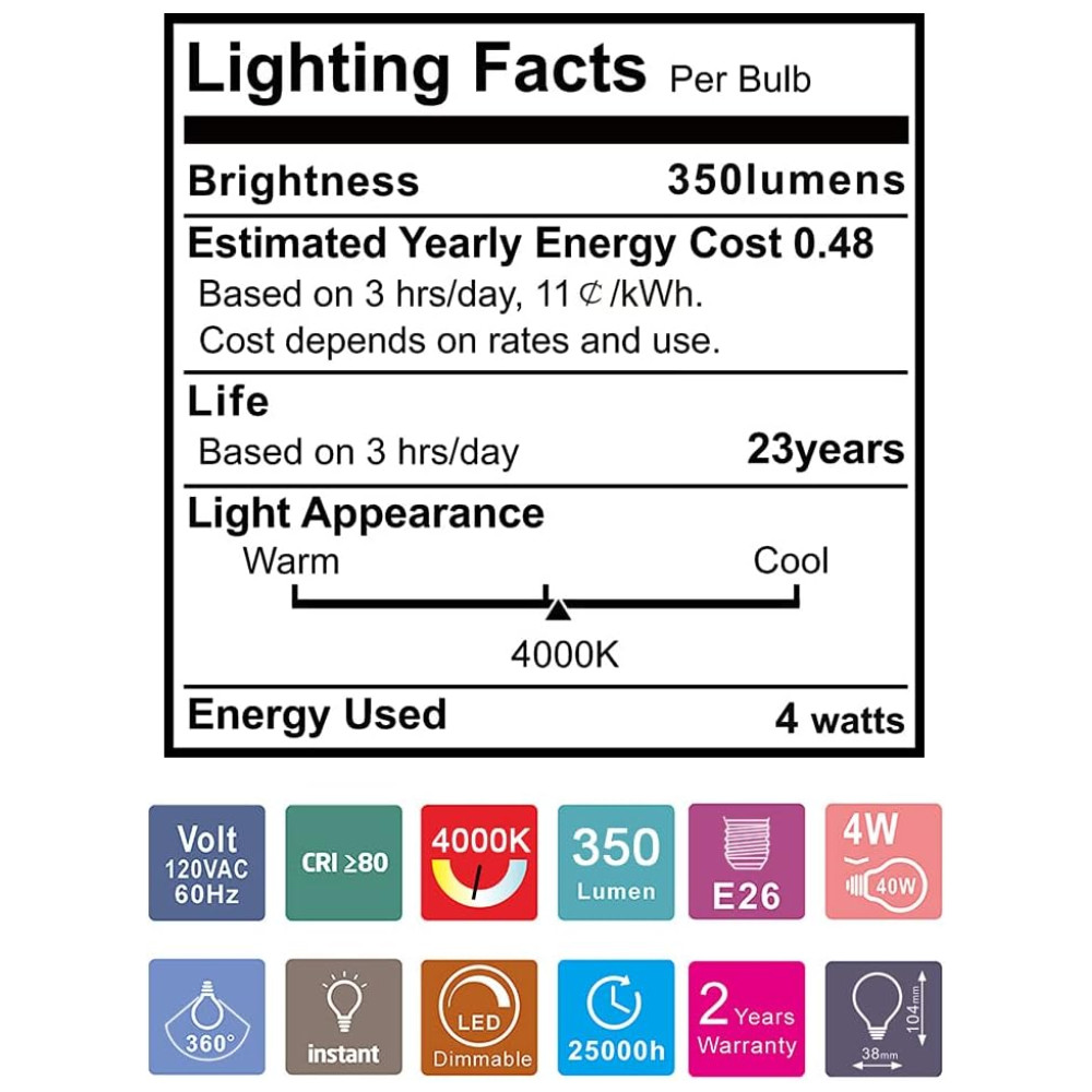 LÂMPADA DE LUZ DIMMABLE Oferece 350 lúmens de brilho confortável e relaxante branco neutro, recursos de escurecimento suave de 100 20 compatível com os dimmers listados