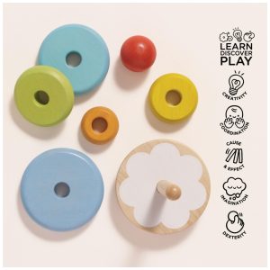 Empilhador de Arco Íris de Madeira 7Ppeças para Crianças de 18 Meses ou Mais Le Toy Van.