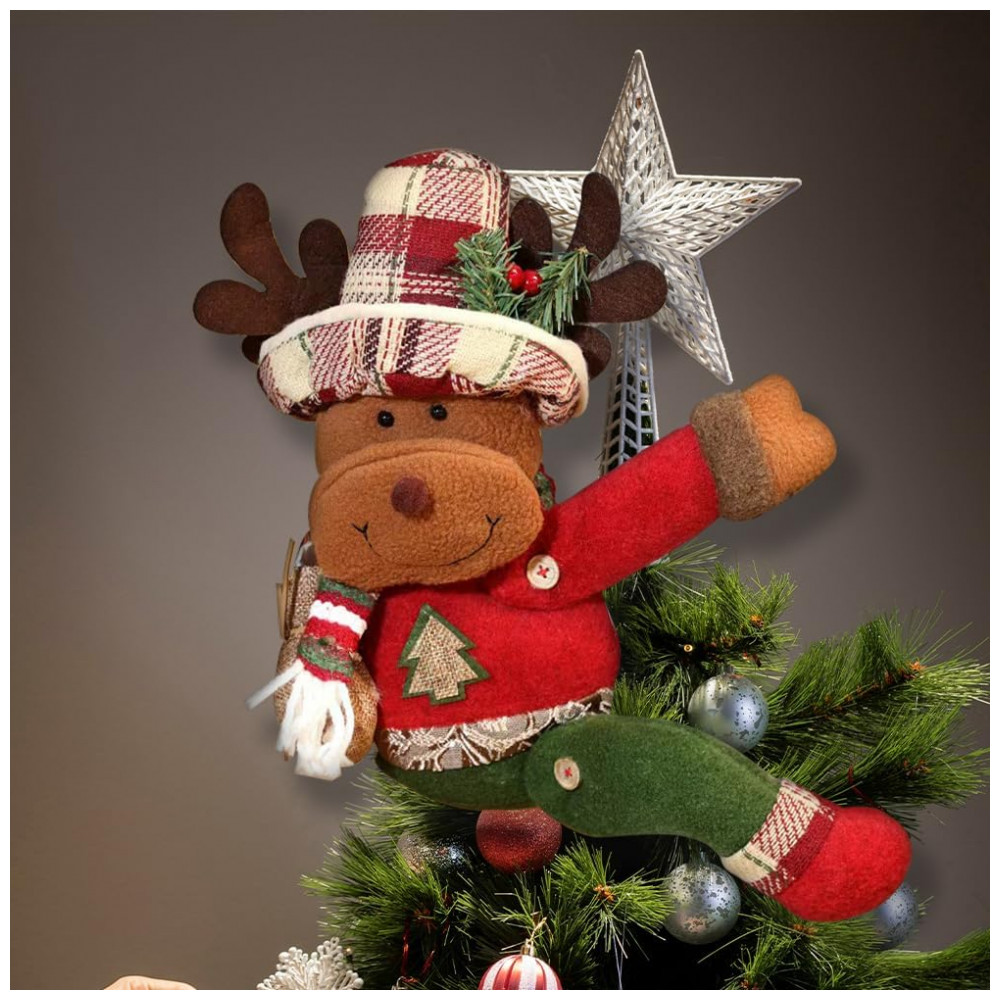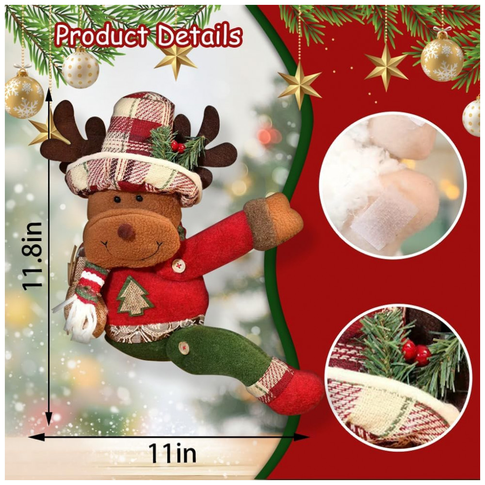 Aprimore a decoração natalina com este criativo enfeite de árvore de Natal da CHMOART. Feito de algodão, poliéster e pelúcia, possui um design encantador de um abraço de Papai Noel com chapéu xadrez verde, saco de presentes, bagas e folhas. Esta peça versátil pode ser colocada no topo da árvore, na cortina, sofá, porta, poste da cama ou até mesmo em garrafas de vinho, criando uma atmosfera calorosa e alegre. Fácil de instalar, o abraço de rena possui Velcro nas mãos e pés, permitindo fixá-lo facilmente onde desejar. Além de enfeitar a árvore, pode ser usado em outros locais da casa, como sofá, estante, cortina, garrafa de vinho, luminária, lareira ou até mesmo como presente festivo. Com aproximadamente 30cm de altura e 28cm de largura, é ideal para decorações de feriados.