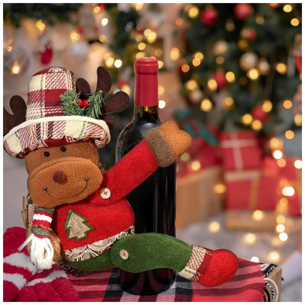 Enfeite de Árvore de Natal com Tema de Rena Fofa Abraço de Pelúcia Divertido Gnome para Decorar Garrafa de Vinho CHMOART