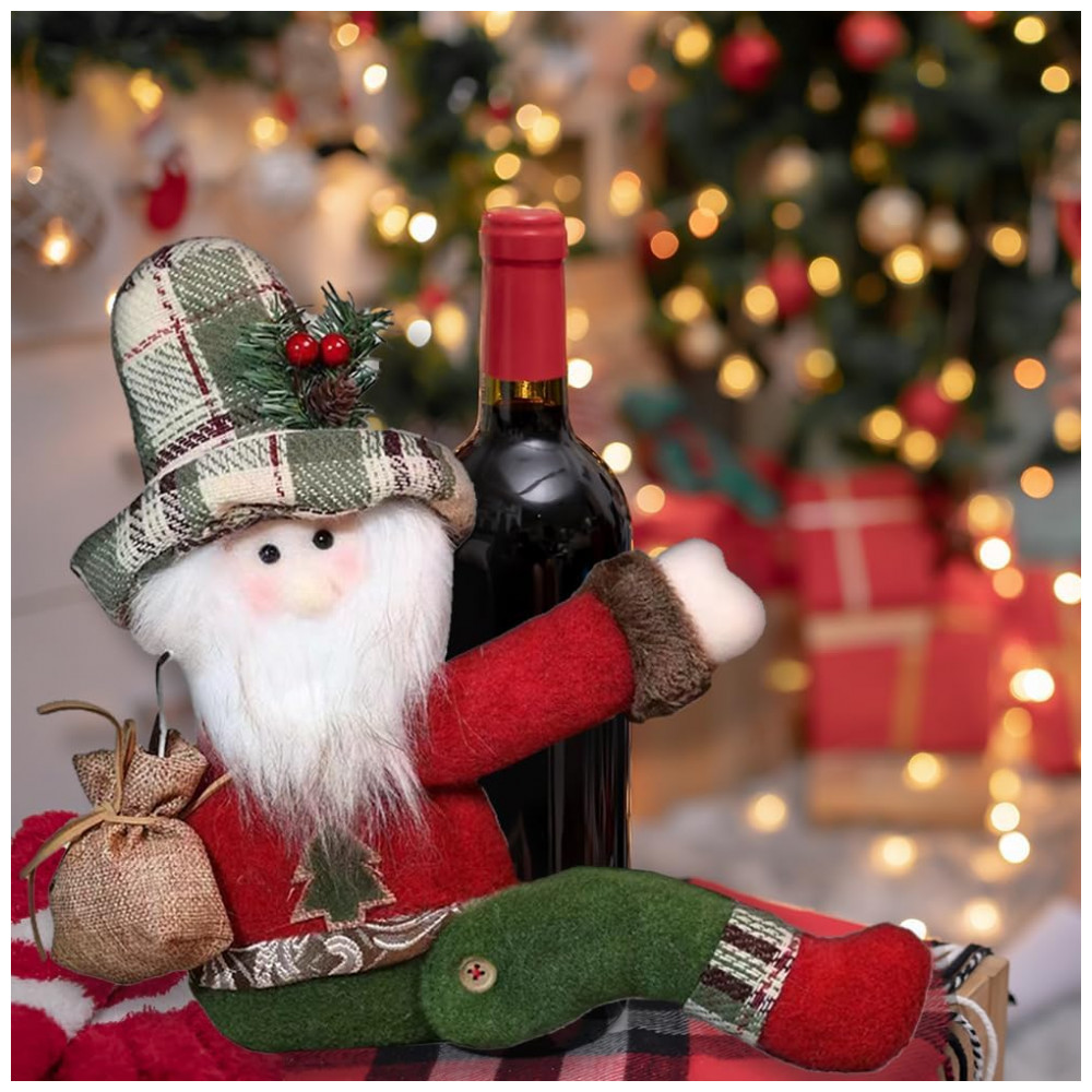 Enfeite de Árvore de Natal Fofo Papai Noel Abraço Pelúcia Enfeite Divertido de Natal Gnome para Garrafa de Vinho CHMOART