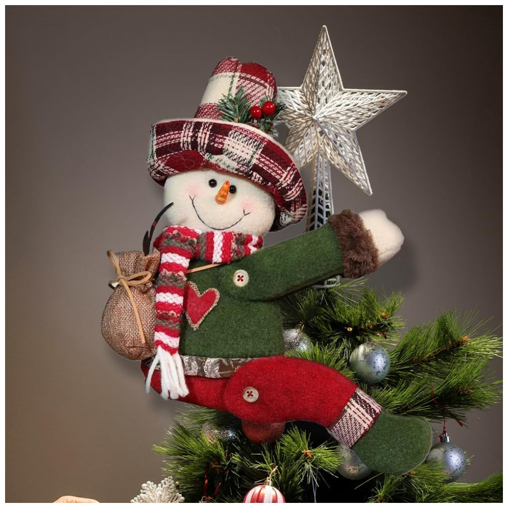Enfeite de Árvore de Natal Lindo Topo de Árvore de Pelúcia com Boneco de Neve Divertido Duende Decorativo e Engraçado CHMOART