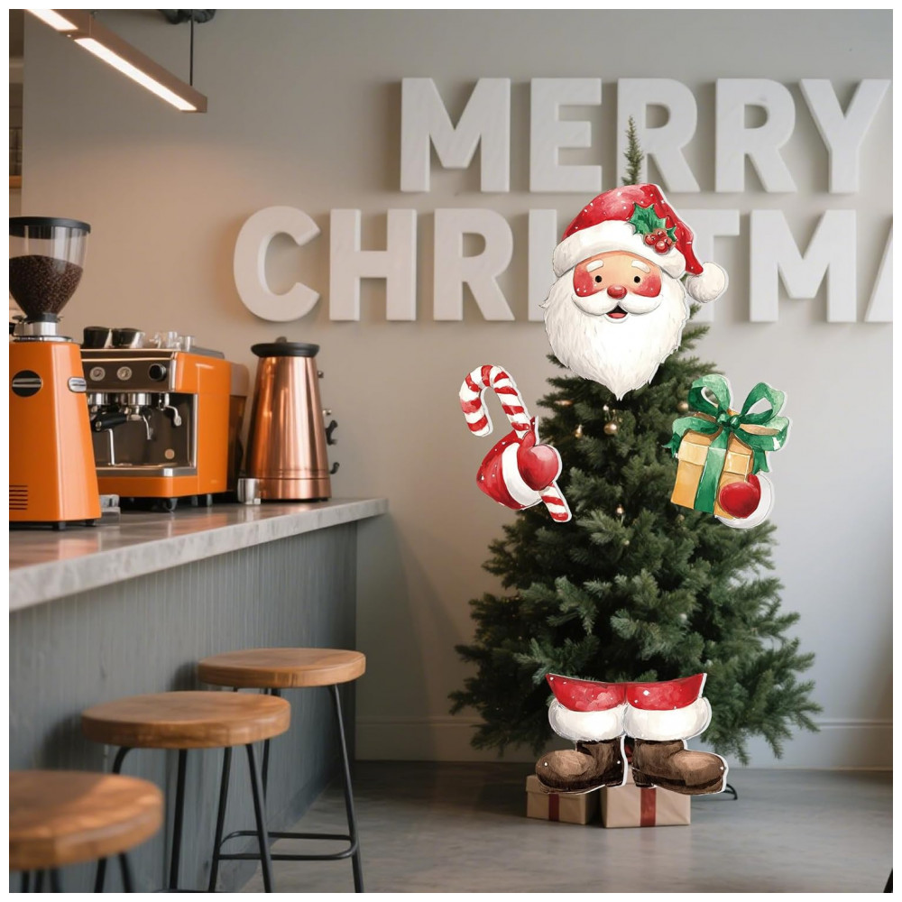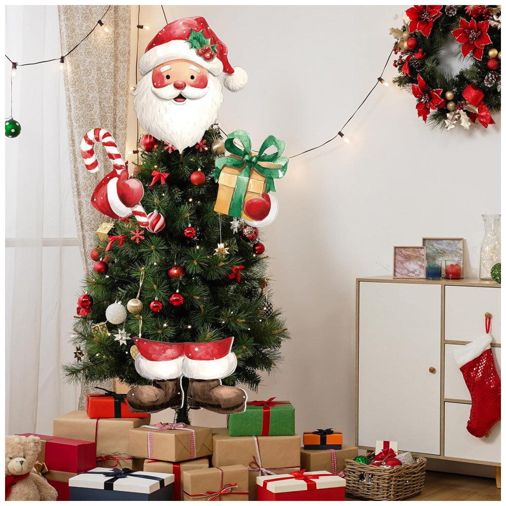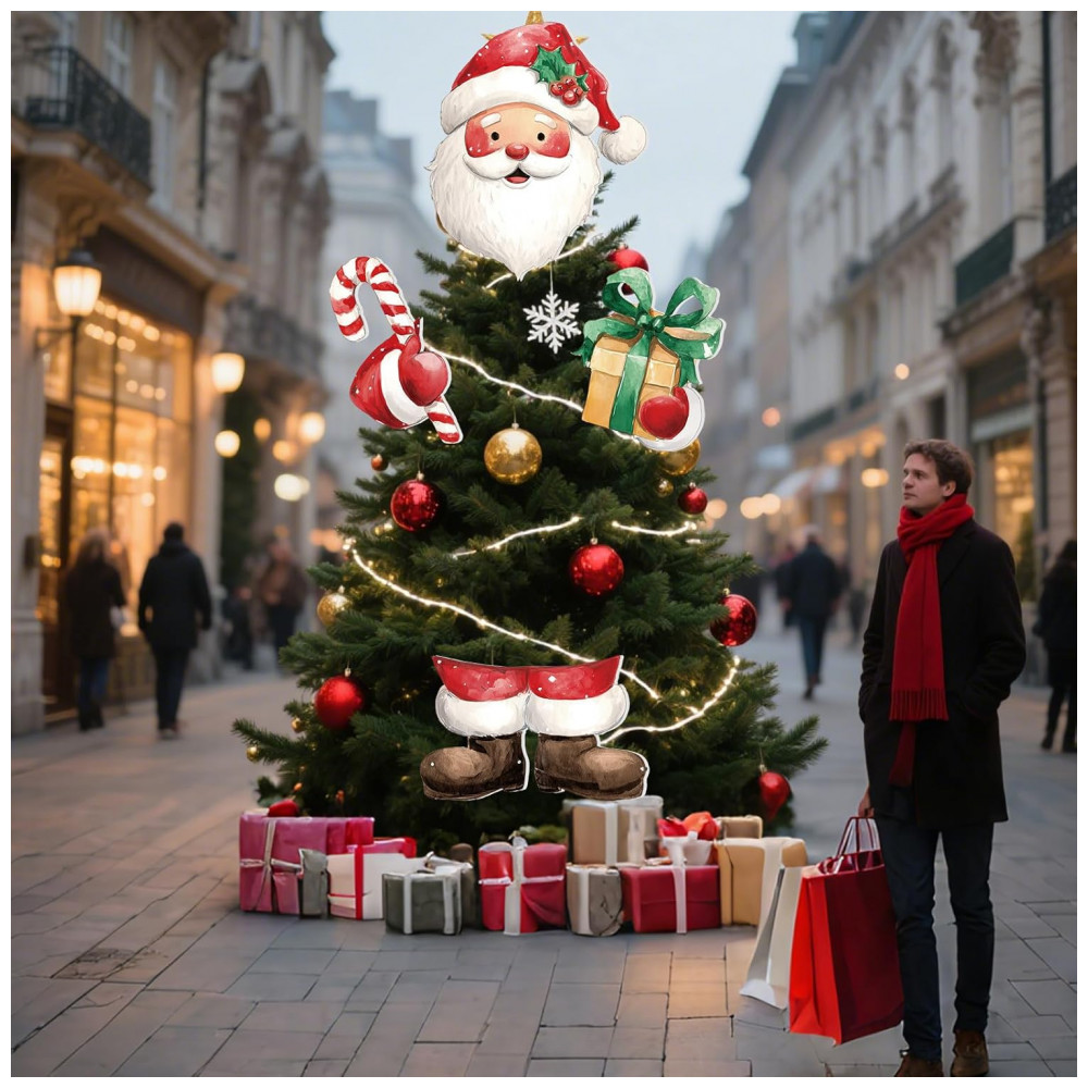 Ideia de Presente Aconchegante: Surpreenda amigos e familiares com este encantador conjunto de decorações de Natal. Além de enfeitar sua casa com muito charme, criando uma atmosfera natalina, também são perfeitos como presentes durante as festas. Decoração Natalina Fofa: Ideal para árvores de Natal, parede de fundo, janelas, sala de estar, entre outros. O Papai Noel abraça a criatividade única da árvore natalina, garantindo uma celebração festiva. Especificações: Material em placa de polipropileno (PP) na cor vermelha predominante. Tamanho da cabeça do Papai Noel: 33 x 28,2 cm; Mãos: 23,9 x 16,5 cm e 23,4 x 19,4 cm; Pernas: 28,9 x 18,6 cm. Conteúdo do Pacote: 1 conjunto de decoração de árvore de Natal do Papai Noel, incluindo cabeça, mãos e pernas. Fácil de Instalar: Basta inserir as varetas nos enfeites e colocá-los na árvore. Ajuste o ângulo conforme desejar para dar vida ao Papai Noel. Amplas Aplicações: Além de árvores, podem ser usados em ramos, lareiras, guirlandas e mais. Um presente adorável para familiares e amigos durante as festas.