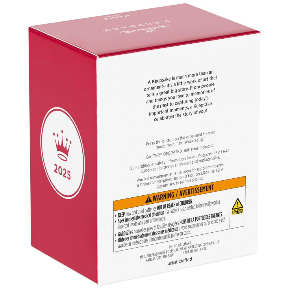 Reviva a mágica história de Cinderela com o ornamento Hallmark Keepsake 2025 A Lovely Dress for Cinderelly. O ornamento apresenta Cinderela vestida com seu lindo vestido rosa e branco, criado com a ajuda de seus amigos animais. Ao pressionar um botão, o enfeite toca a música “The Work Song”, que é cantada pelos camundongos e pássaros no filme clássico da Disney. Feito de plástico, este ornamento combina detalhamento artesanal e tecnologia musical, sendo perfeito para colecionadores e fãs da história mágica da princesa. Vem em caixa para presente e inclui baterias LR44.