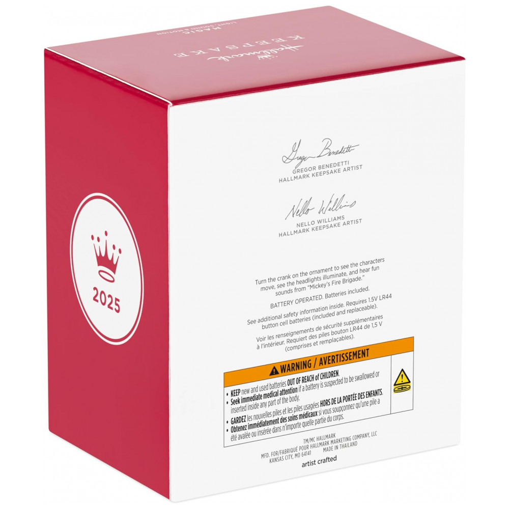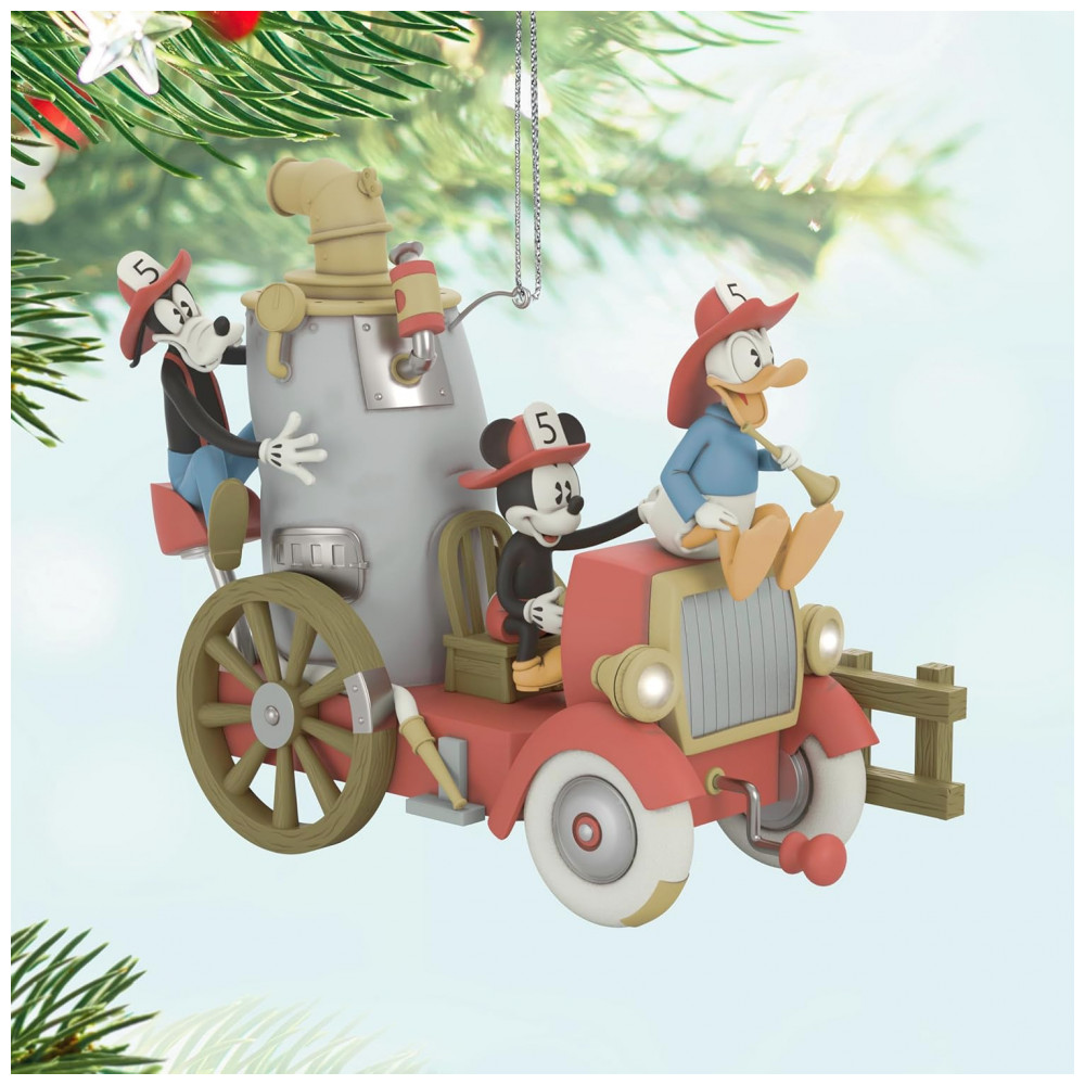 Enfeite de Natal Hallmark Keepsake 2025 Disney Mickey e Amigos – Amigos Bombeiros 2025 com Luz Som e Movimento Plástico 127 x 108 x 7 cm
