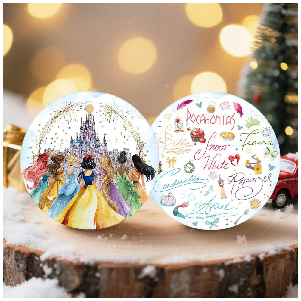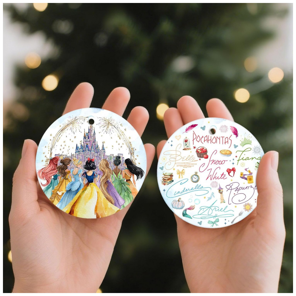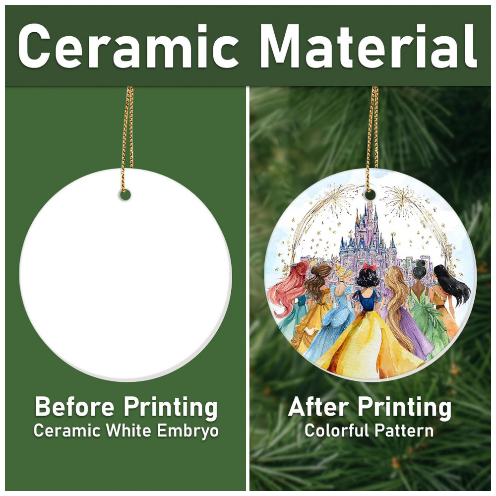 Este delicado enfeite de Natal em cerâmica é uma escolha perfeita para transformar qualquer ambiente com um toque de conto de fadas e magia. Decorado com tons pastel e acabamento brilhante, o ornamento apresenta uma cena encantadora de castelo de conto de fadas com princesas em vestidos e silhuetas cintilantes, tornando-o um destaque especial em árvores de Natal, janelas, lareiras ou como detalhe decorativo no quarto de crianças. Fabricado em cerâmica de alta qualidade com impressão UV dupla face, o acabamento proporciona durabilidade, cores vivas e resistência ao longo dos anos. Ideal como presente para meninas, filhas, sobrinhas e netas apaixonadas pelo universo das princesas, este enfeite é igualmente adequado para mulheres, homens e qualquer fã de histórias mágicas, sendo uma lembrança atemporal para aniversários e celebrações de fim de ano.