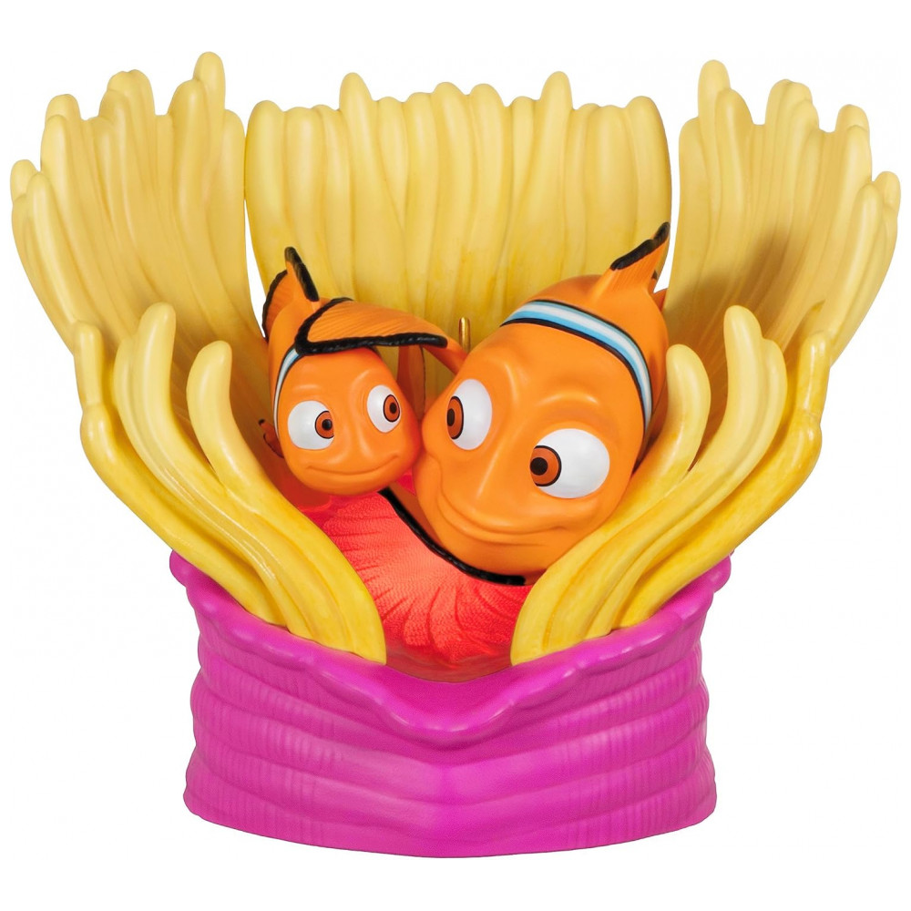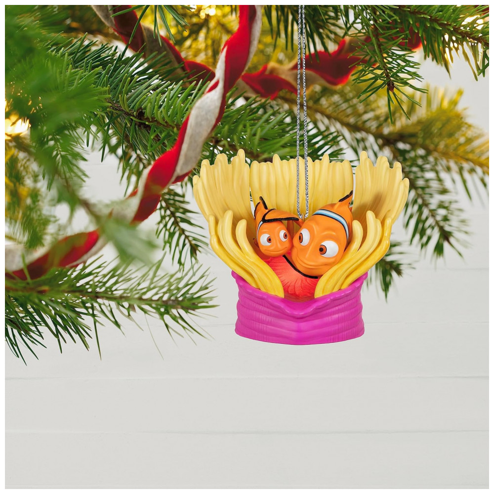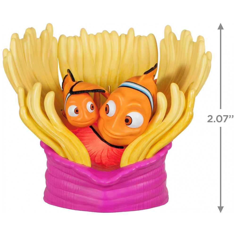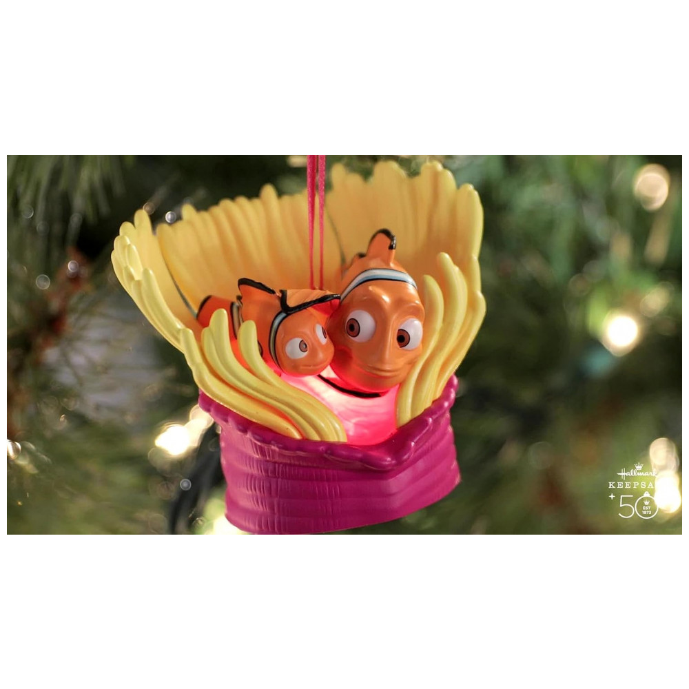 Comemore o 20º aniversário do amado filme Disney/Pixar “Procurando Nemo” com este enfeite natalino Hallmark Keepsake. A peça apresenta o pai e o filho peixe-palhaço Marlin e Nemo em sua casa anêmona, trazendo uma decoração doce e simbólica, perfeita como presente entre pais e filhos. Quando encaixado em uma lâmpada de pisca-pisca padrão, o enfeite se ilumina, criando um efeito especial e encantador na árvore de Natal. Feito de plástico de alta qualidade, este enfeite une detalhes artísticos excepcionais, ideal para preservar memórias preciosas e celebrar momentos especiais.