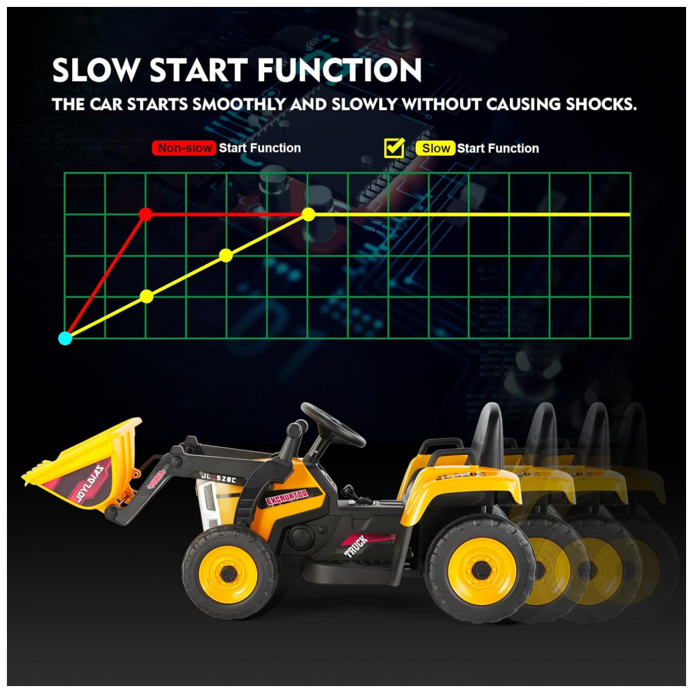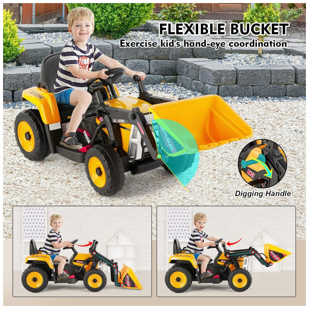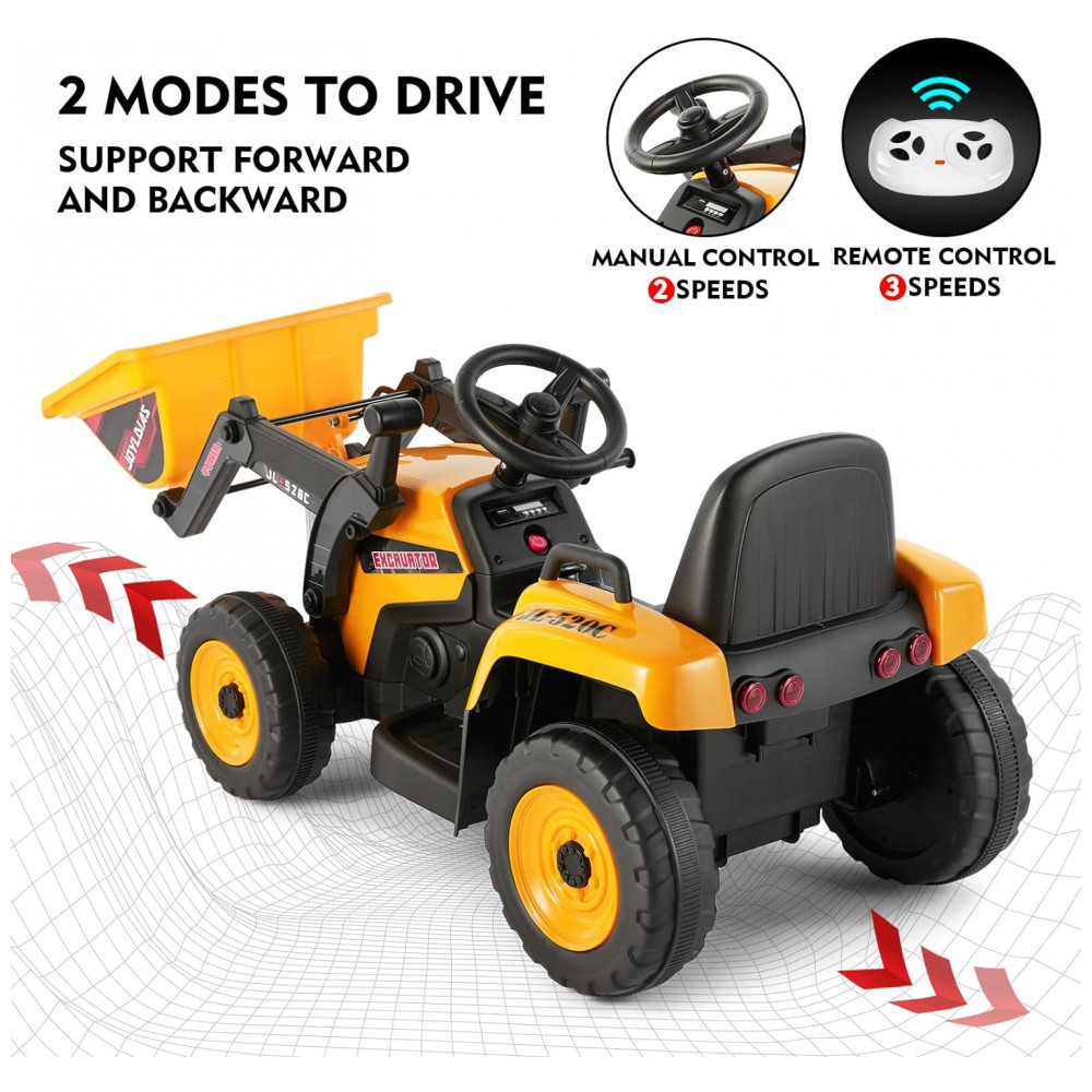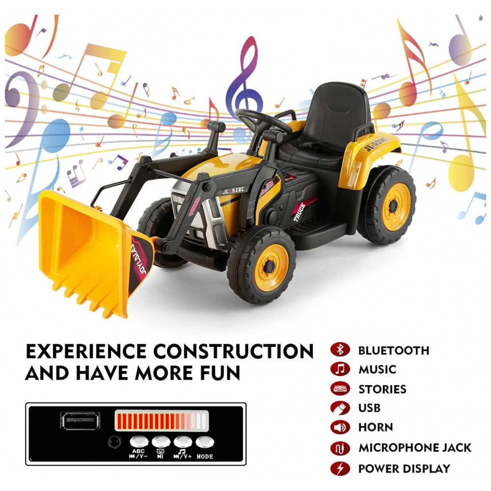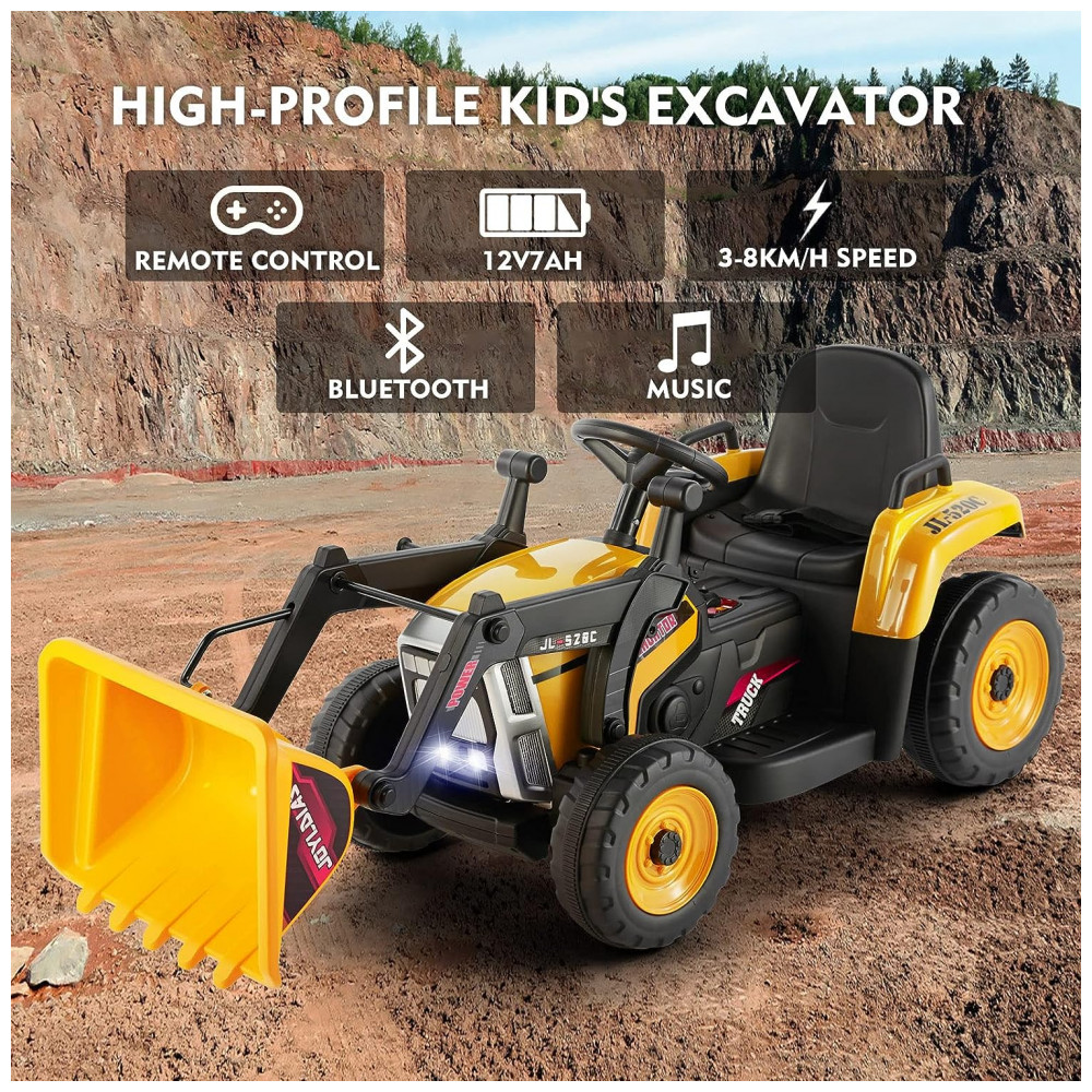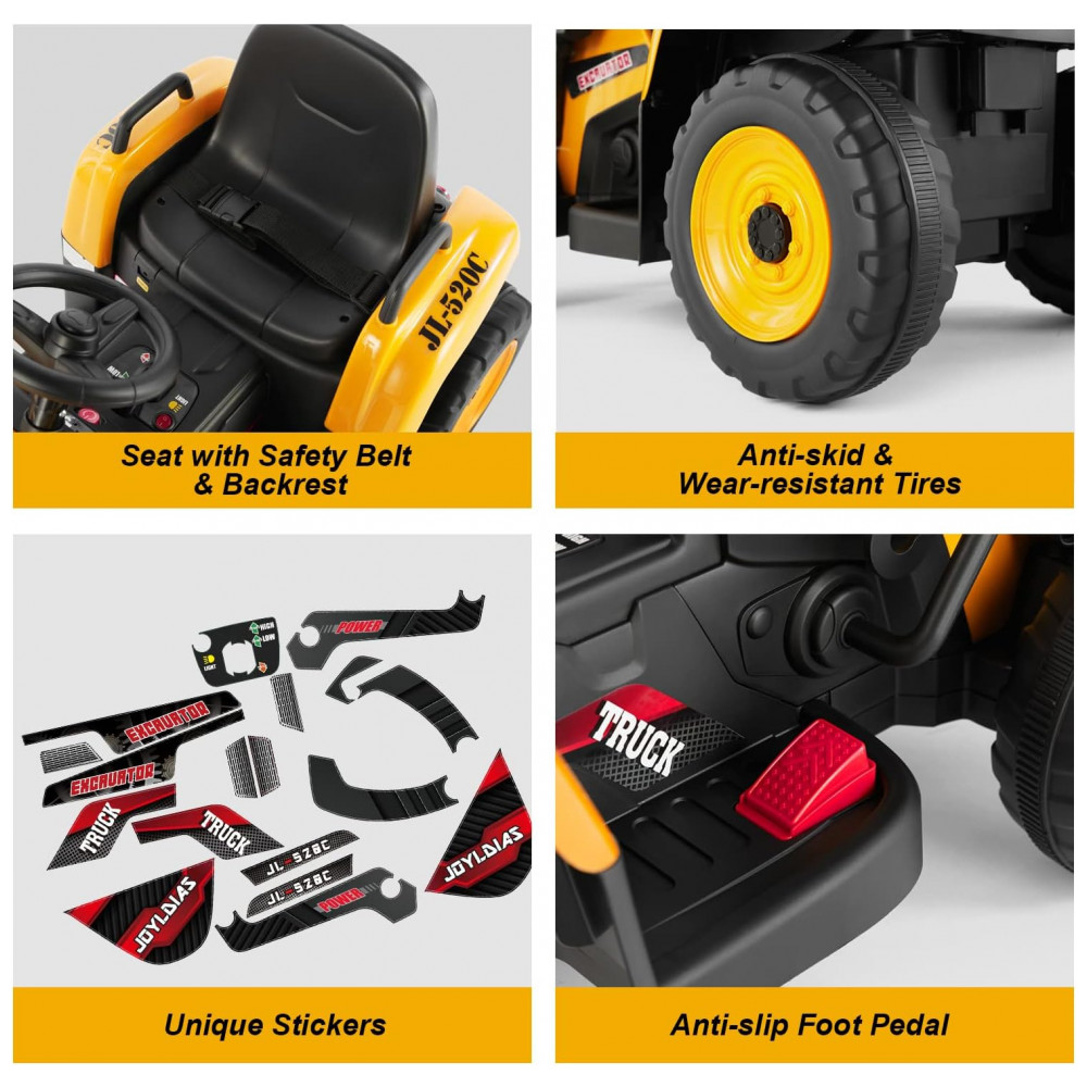 Escavadeira Elétrica Infantil 1 Assento com 3 Velocidades Bluetooth Microfone Música e Luzes 12V JOYLDIAS Amarela