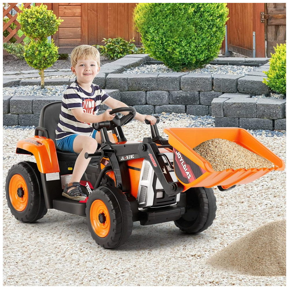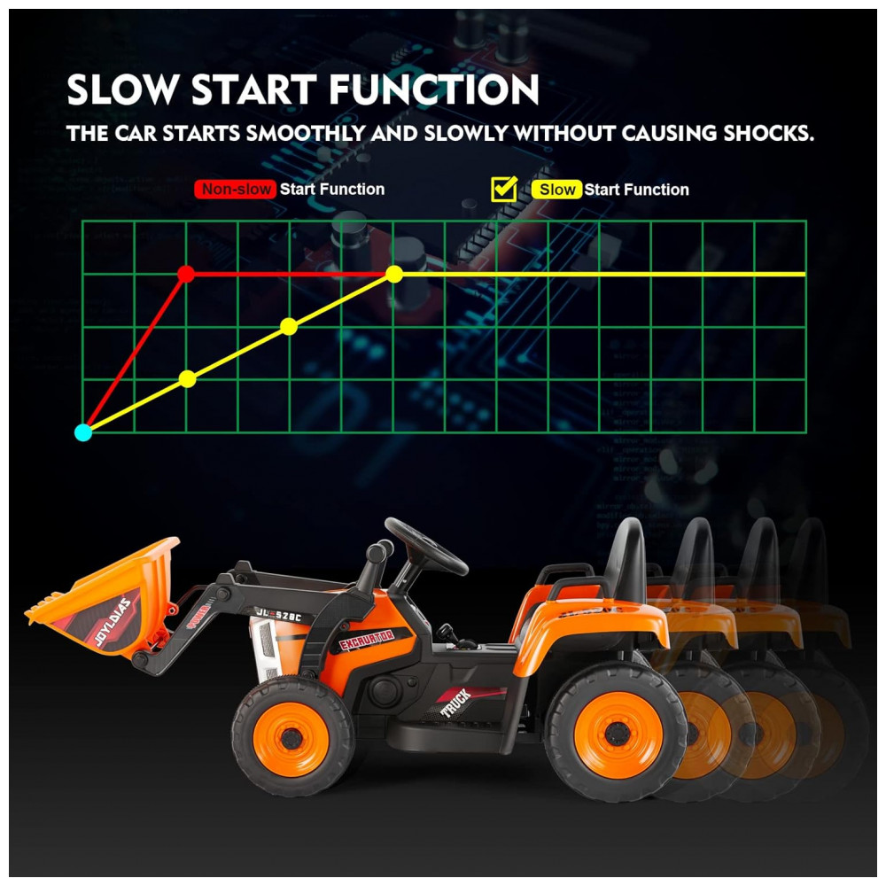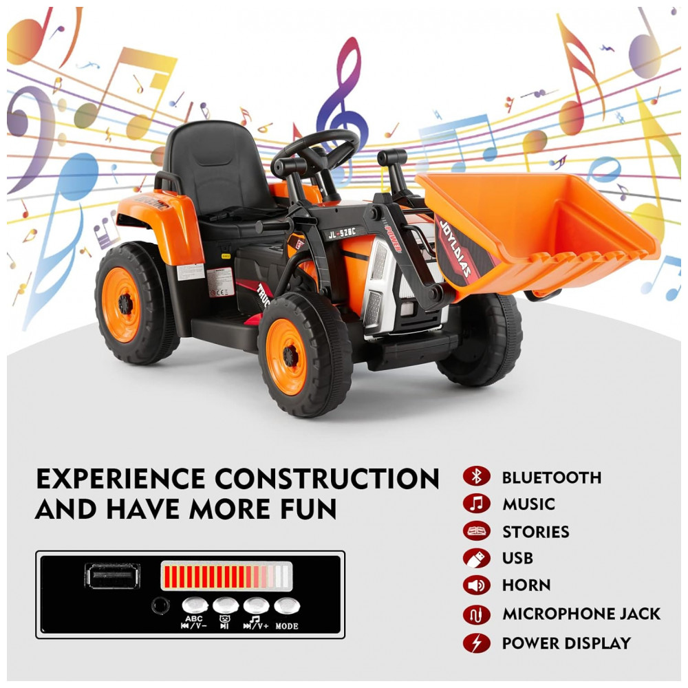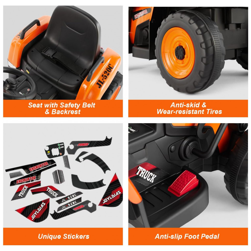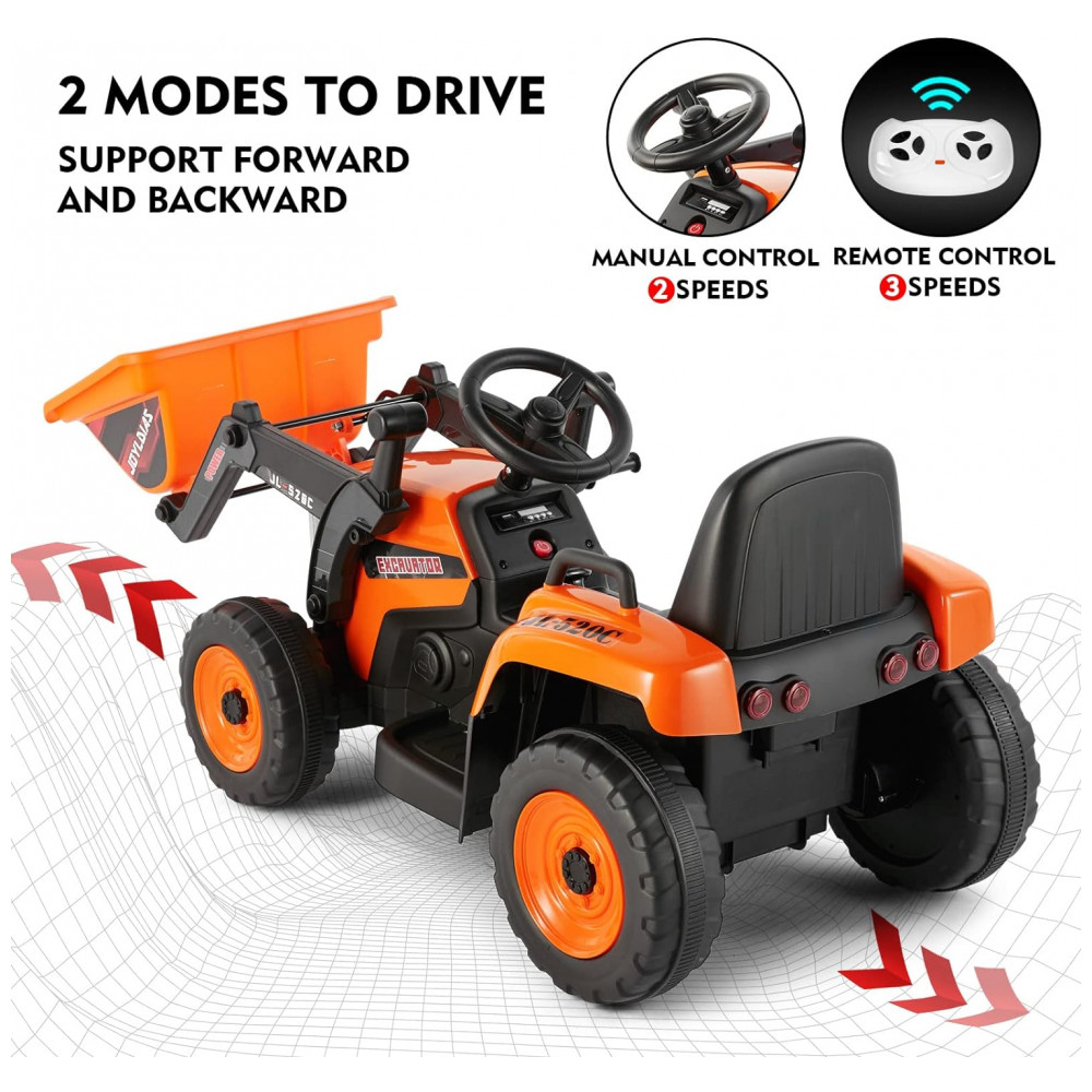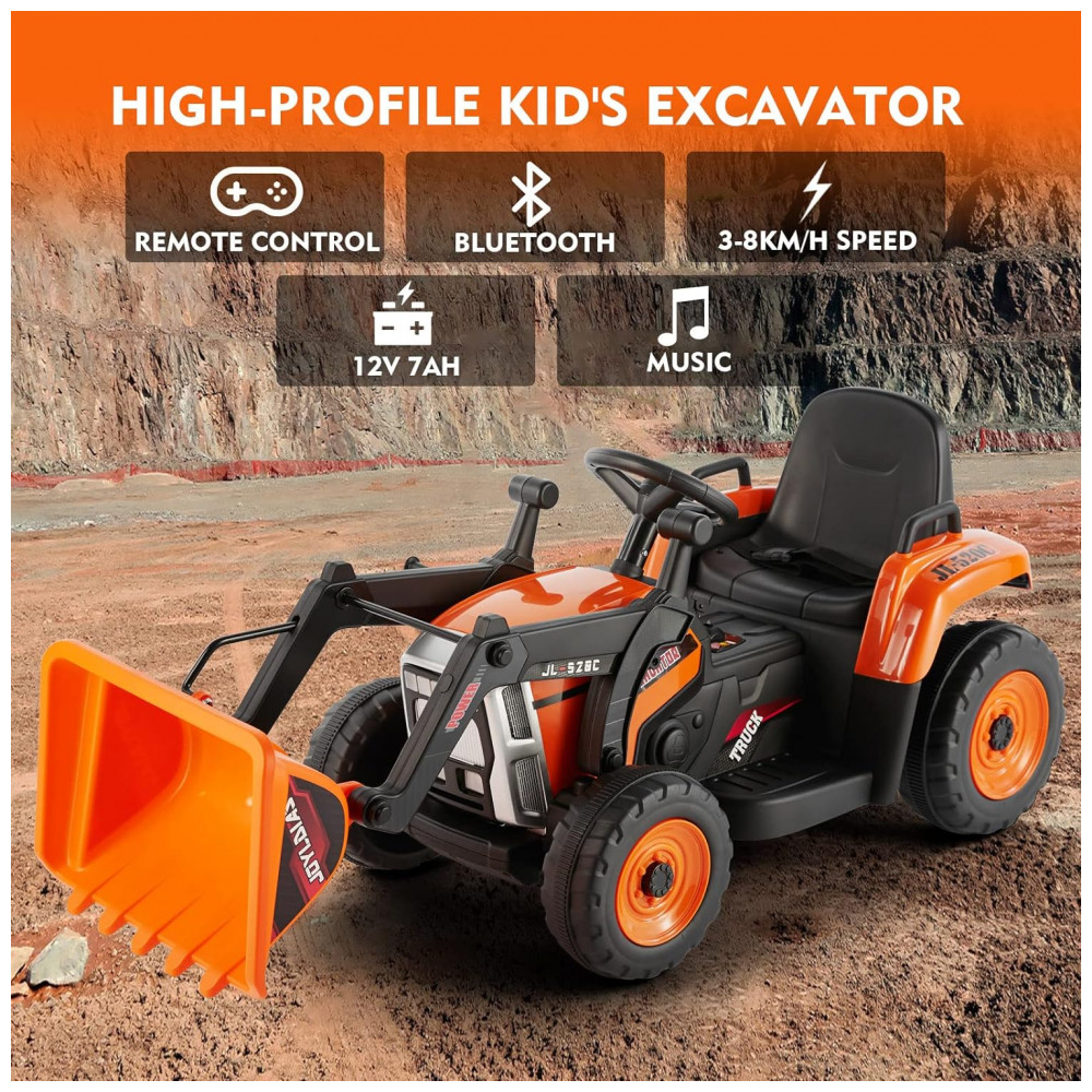 Escavadeira Elétrica Infantil a Bateria 12V com Controle Remoto 2.4 GHz 3 Velocidades Música e Luz LED JOYLDIAS Laranja