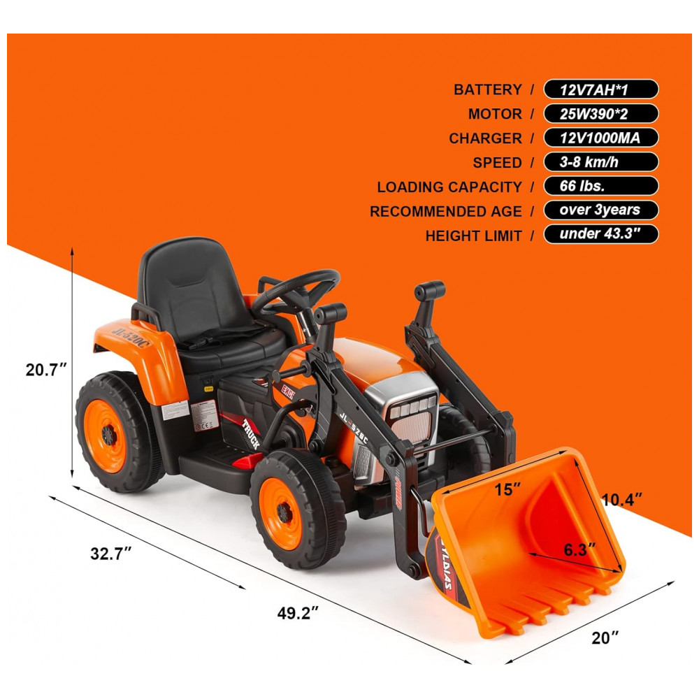 Presente Ideal Com uma bateria de 12V7A e velocidade de 3 8 km, h, este veículo tem dimensões totais de 127 x 50 x 50 centímetros. Com capacidade para 29,94 kg, é feito de materiais resistentes como PP e ferro, com certificações ASTM e CPC. Apropriado para crianças de 3 a 8 anos, a Escavadeira Infantil JOYLDIAS é um presente maravilhoso para aniversários e o Natal.