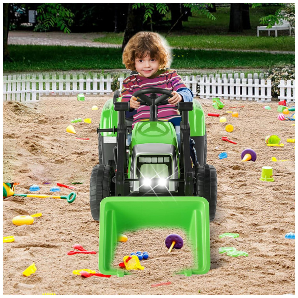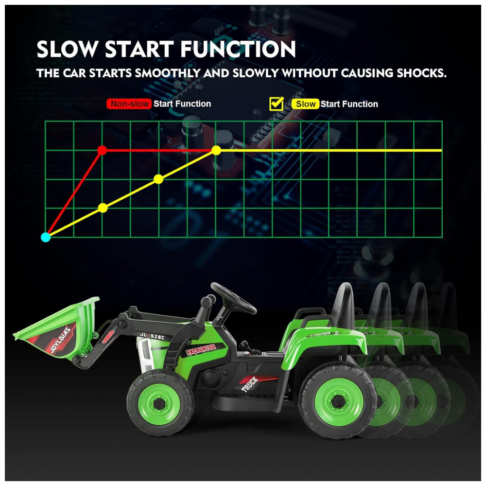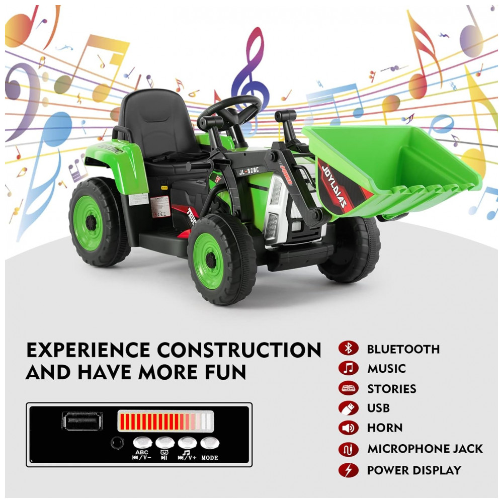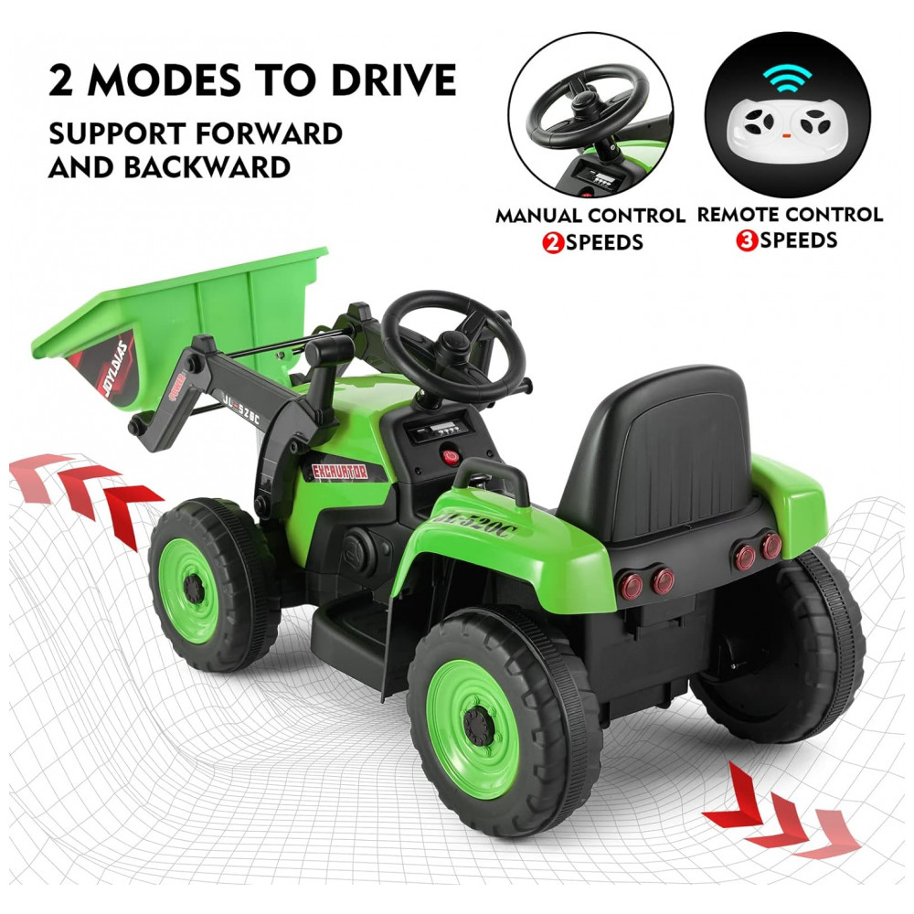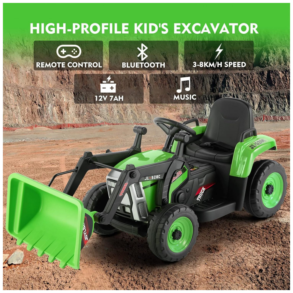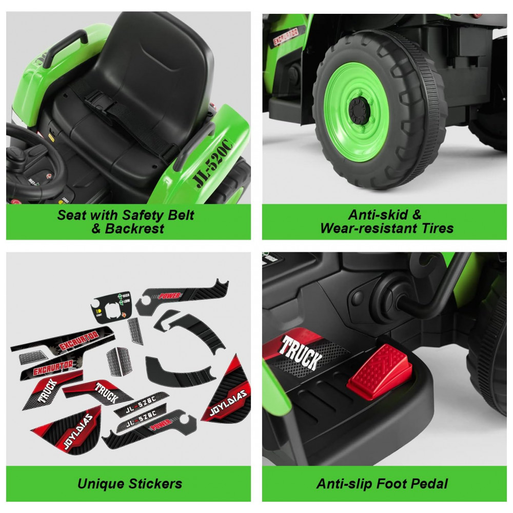 Escavadeira Elétrica Infantil a Bateria 12V com Controle Remoto 2.4 GHz 3 Velocidades Música e Luz LED JOYLDIAS Verde