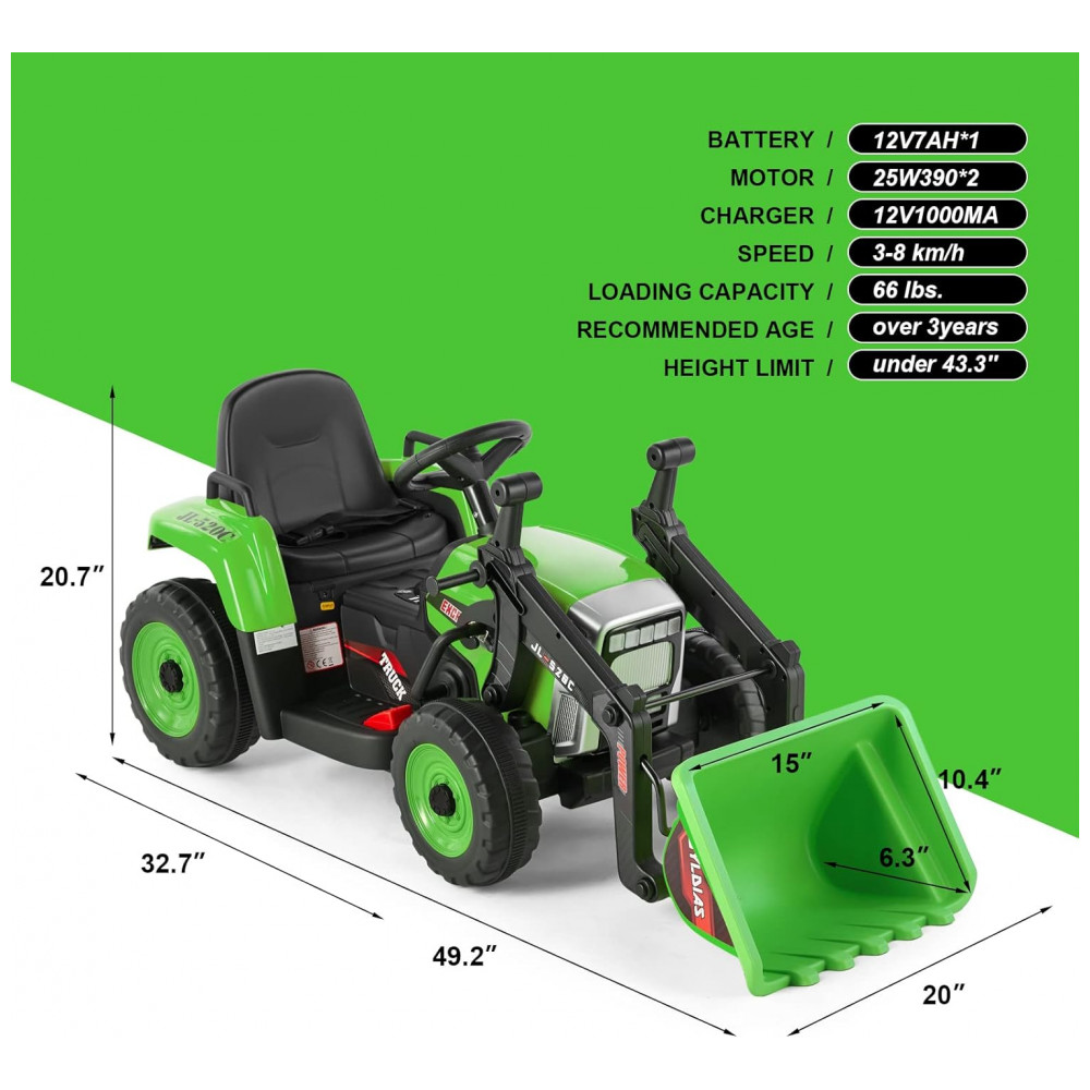 Presente Ideal Com uma bateria de 12V7A e velocidade de 3 8 km, h, este veículo tem dimensões totais de 127 x 50 x 50 centímetros. Com capacidade para 29,94 kg, é feito de materiais resistentes como PP e ferro, com certificações ASTM e CPC. Apropriado para crianças de 3 a 8 anos, a Escavadeira Infantil JOYLDIAS é um presente maravilhoso para aniversários e o Natal.