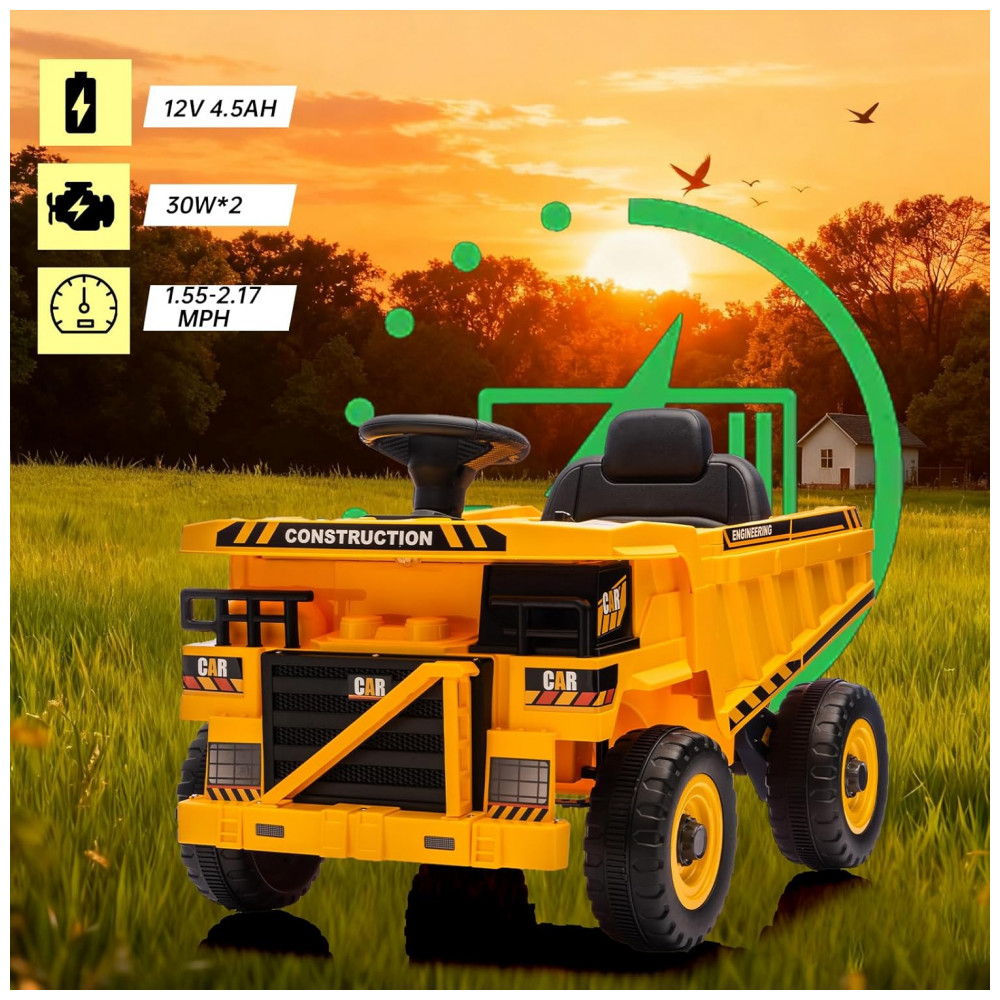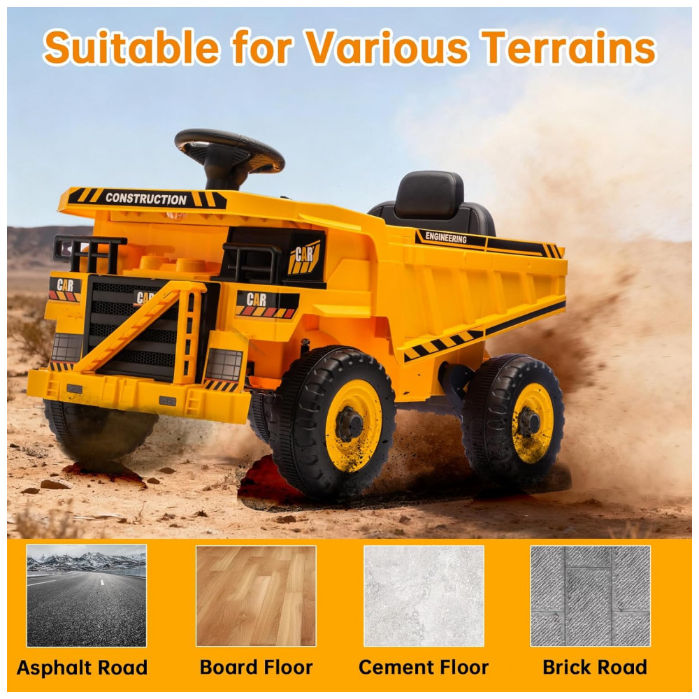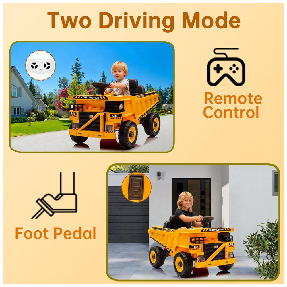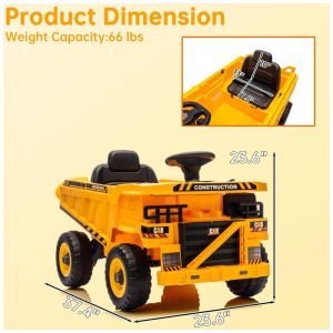 DURÁVEL O caminhão basculante AOKOY foi projetado com 2 velocidades de 2 a 4 km, h, função de partida suave e cinto de segurança de 3 pontos, para manter as crianças seguras e garantir a experiência de dirigir. O material PP de alta qualidade e a estrutura de ferro sólido mantêm este caminhão elétrico infantil durável e estável. A capacidade máxima de peso deste brinquedo infantil é de 29 kg