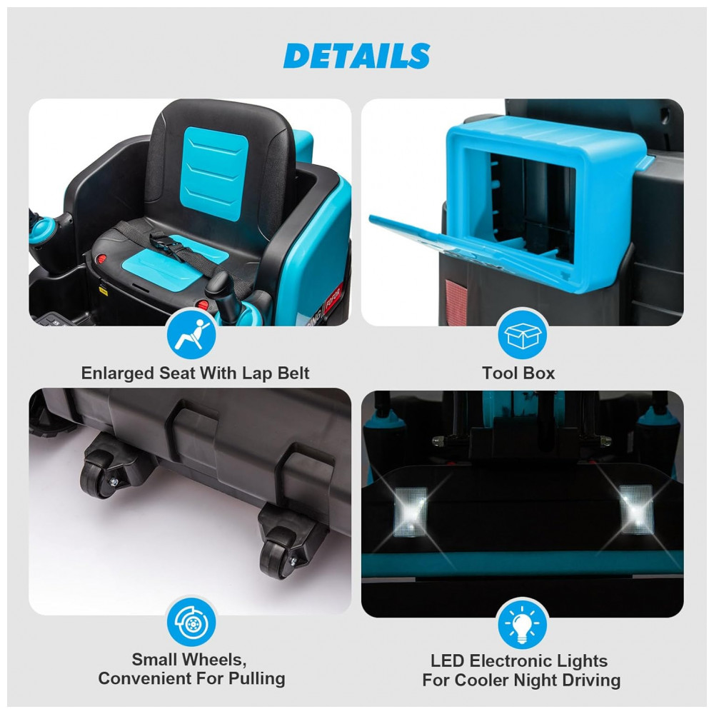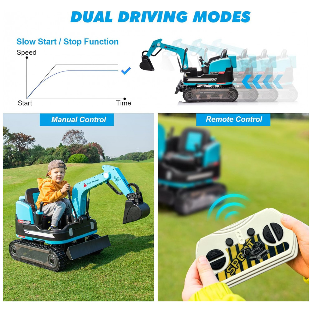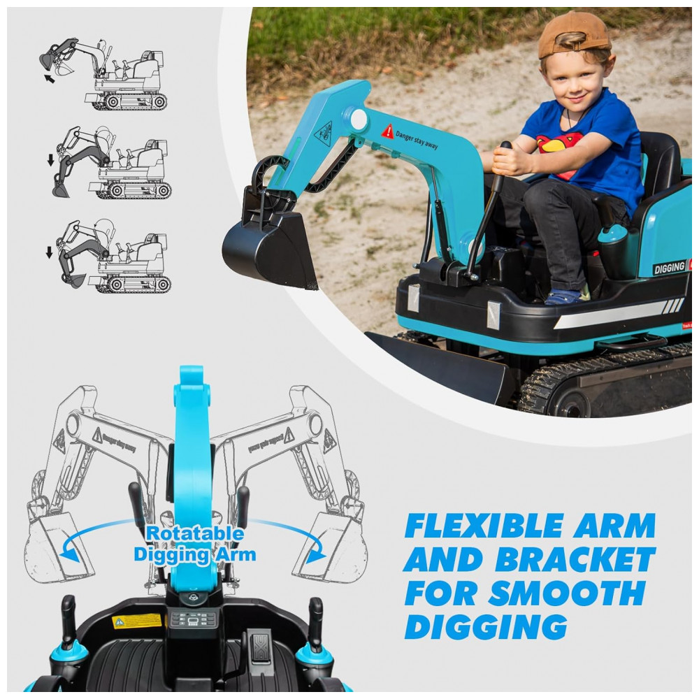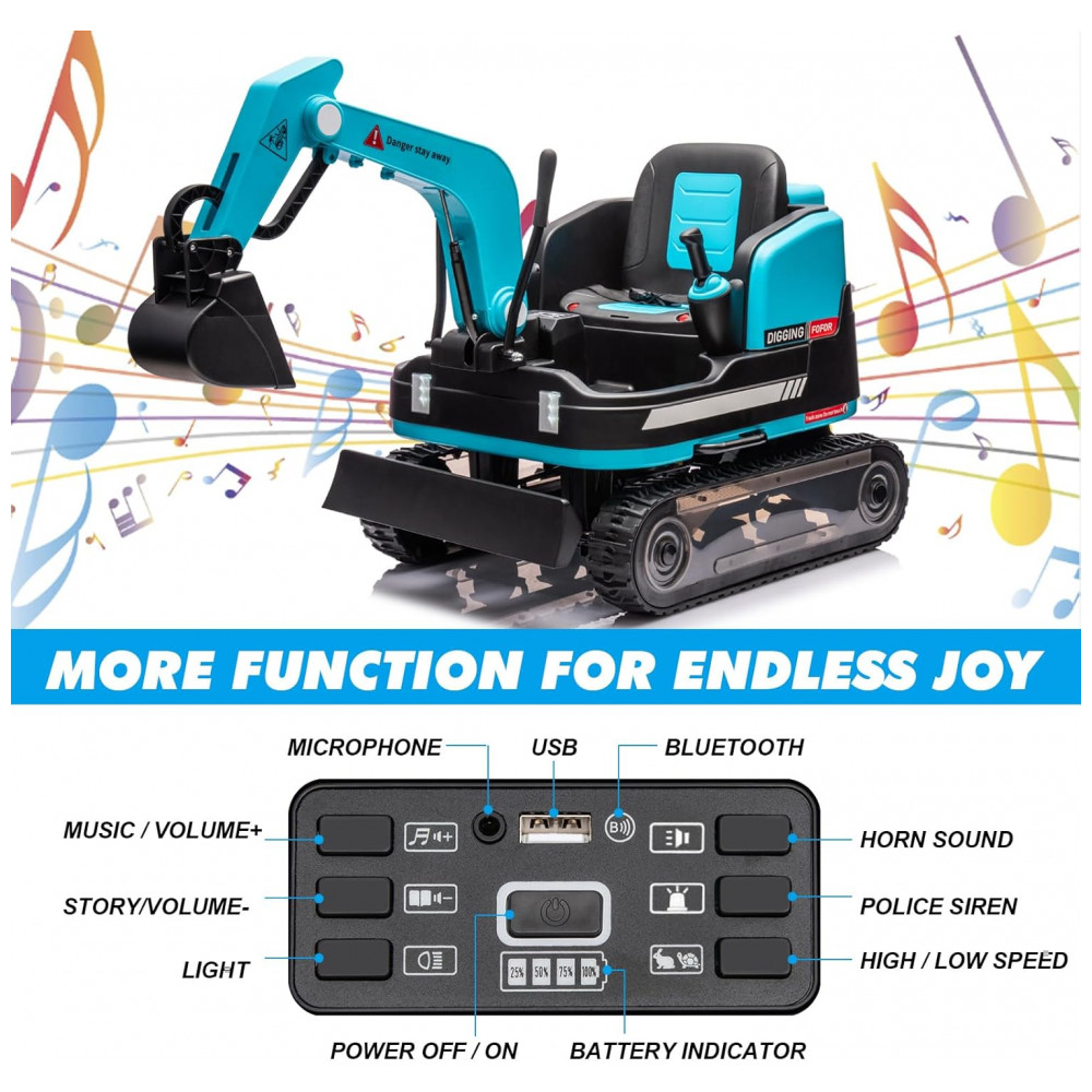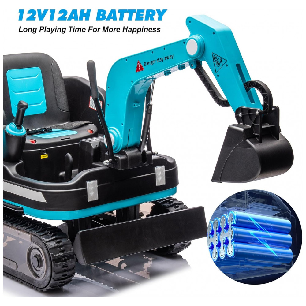 Escavadeira Infantil Elétrica JOYLDIAS Azul 12V 360° Rotativa Buldôzer Controle Remoto MP3 USB Trilhos Multi-Terreno Toolbox