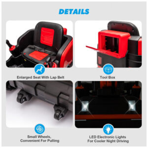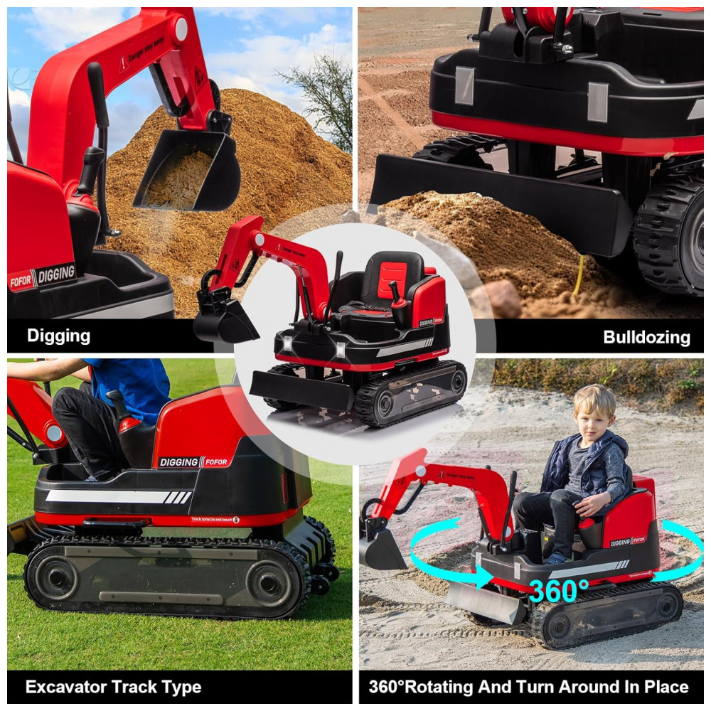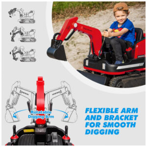 Escavadeira Infantil Elétrica JOYLDIAS Vermelha 12V 360° Rotativa Buldôzer Controle Remoto MP3 USB Trilhos Multi-Terreno Toolbox