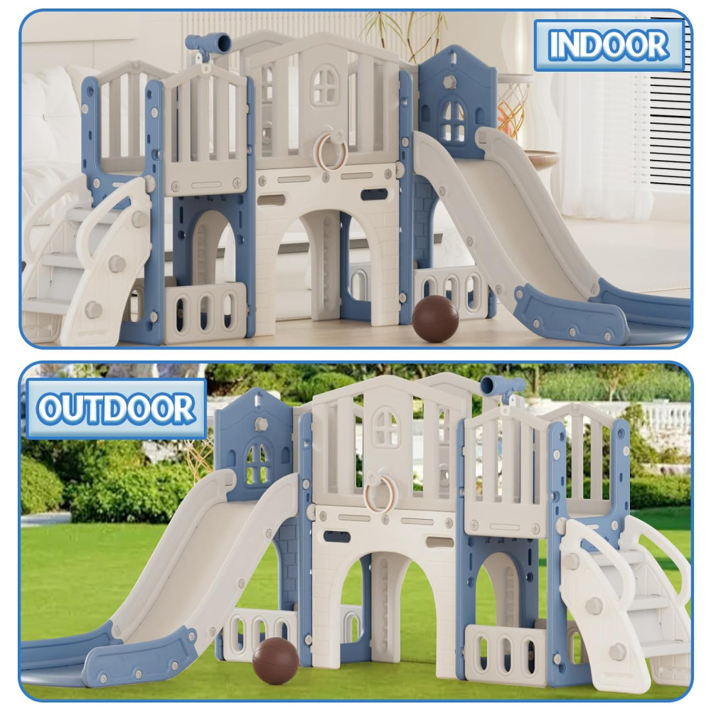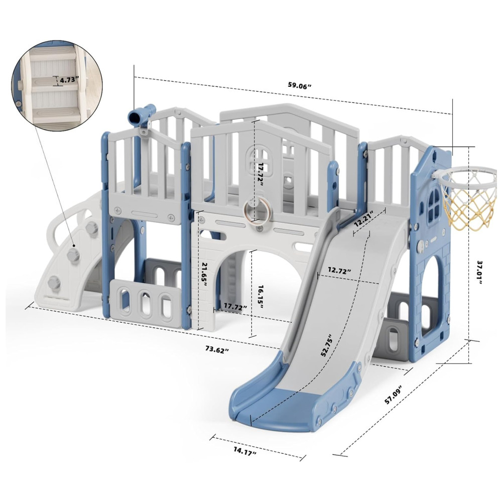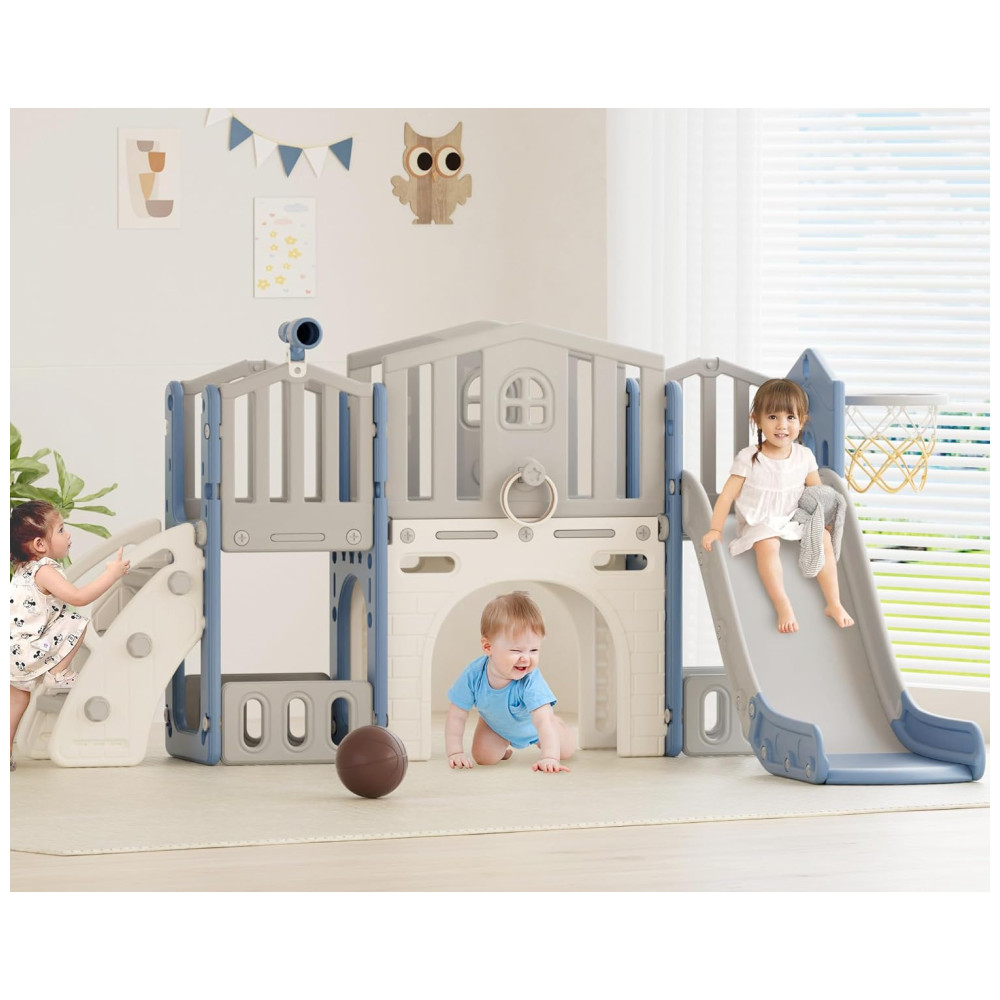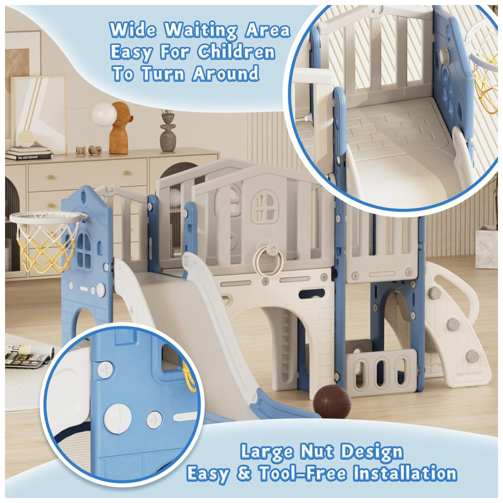 Escorregador 9 em 1 XJD Escorregador para Bebês a Partir de 1 Ano Playground com Cesta de Basquete Para Interior e Exterior (Azul) para Crianças.