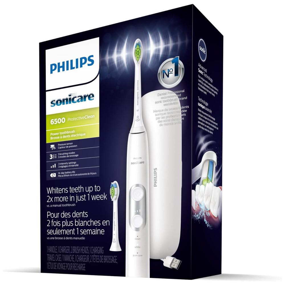 Escova de dentes elétrica recarregável ProtectiveClean 6500 com estojo de carregamento de viagem e cabeça de escova extra branco PHILIPS SONICARE HX6462 05 Branco