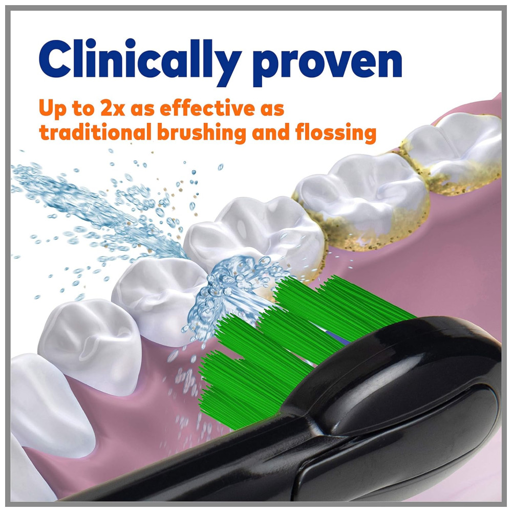 Cor Preto. A escova de dentes do fio dental Waterpik Sonic Fusion SF 02 combina o poder de uma escova de dentes elétrica Sonic recarregável avançada com a eficácia comprovada do Waterpik Water Flosser. UM DISPOSITIVO FAZ TUDO A tecnologia do fio dental está integrada na cabeça da escova para fornecer uma limpeza completa. Com o apertar de um botão, o Waterpik Sonic Fusion muda perfeitamente da escovação para o fio dental para ambos e remove as bactérias nocivas e detritos entre os dentes e abaixo da linha da gengiva que a escovação tradicional e o fio dental não podem alcançar. CARACTERÍSTICAS E NA CAIXA 2 cabeças de escova de fio dental com código de cores Cabeça de escova projetada para alcançar os dentes traseiros no ângulo correto para o fio dental com água Cronômetro de escovagem de 2 minutos com marcapasso de 30 segundos Controle avançado de pressão de água com 10 configurações Escova de dentes recarregável e base de carregamento recarregável Escova de dentes luz indicadora Estojo de escova de dentes Deluxe para viagem O reservatório retém 414ml de água por 60 segundos de tempo de uso do fio dental Pode ser com seu enxaguatório bucal favorito