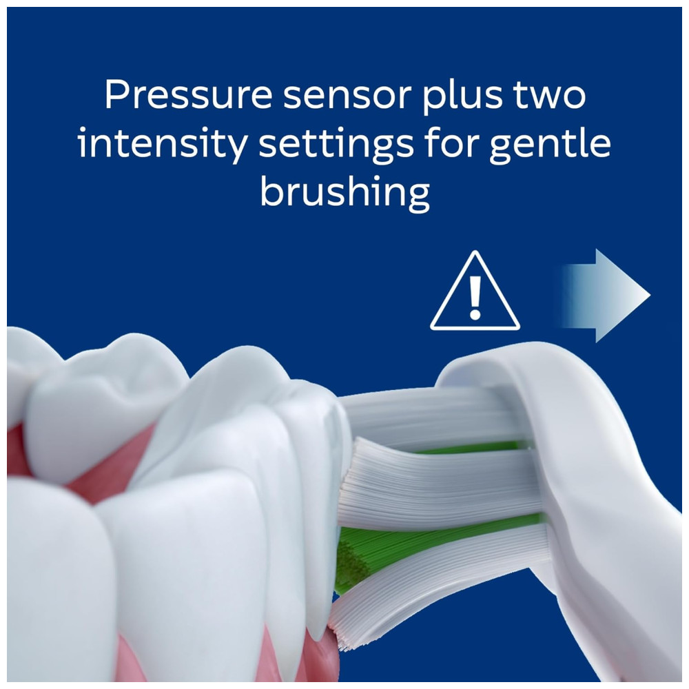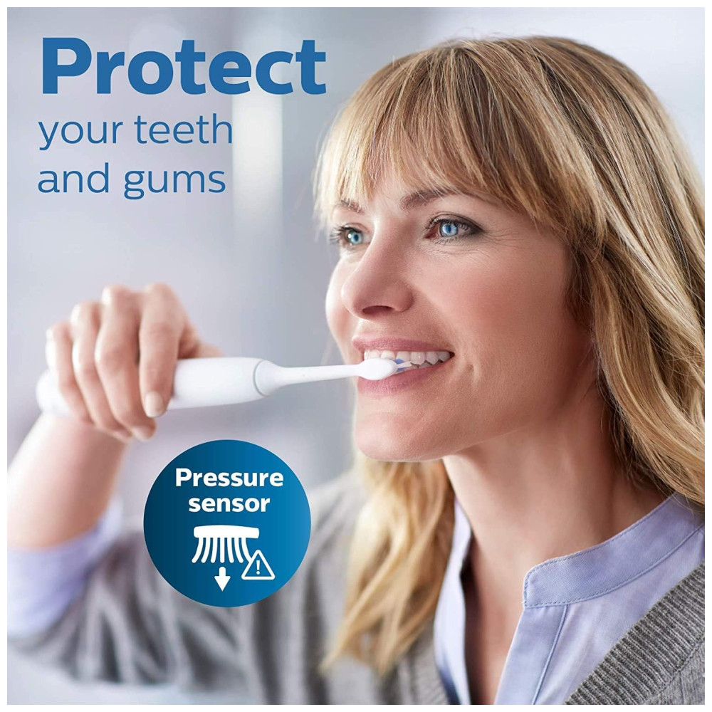 Cor Preto Nome do estilo Padrão. Melhore a saúde da sua gengiva até 100 melhor do que uma escova de dentes manual com a escova de dentes elétrica recarregável Clean 5100 protetora. Possui um sensor de pressão que protege os dentes e gengivas do excesso de pressão de escovação. As cabeças da escova se desgastam com o tempo. Nossa tecnologia Brush Sync rastreia há quanto tempo você usa sua cabeça de escova de goma ideal Care e com que força você está escovando. Sua escova de dentes elétrica emitirá um bipe para informá lo quando substituir a cabeça da escova. Personalize sua própria experiência de escovação com sua escolha de 3 modos Limpo, Branco e Cuidados com a gengiva. O recurso de início fácil aumenta lentamente o poder da escova conforme você se acostuma com a experiência Sonicare e a mais inteligente incentiva um tempo de escovação de 2 minutos, conforme recomendado pelo seu dentista. A luz indicadora de carga da bateria permite que você saiba quando é hora de recarregar Bateria com duração de 2 semanas. O kit inclui 1 cabo de proteção Clean 5100, 1 cabeça de escova para goma de mascar Optimal, 1 carregador e 1 estojo de viagem