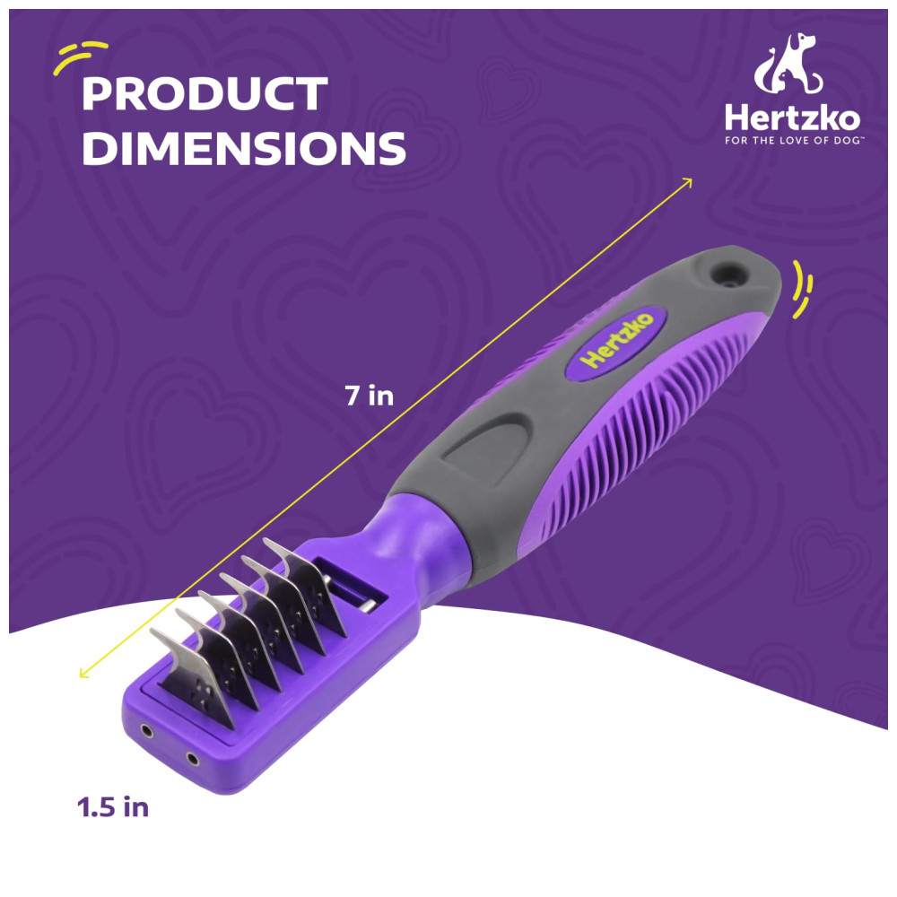 ÓTIMA FERRAMENTA PARA REMOVER ENROLAMENTOS, NÓS, DESLIZAMENTO E TAPETE O removedor de esteira da Hertzko remove cabelos soltos e elimina emaranhados, nós, caspa e sujeira presa. Funciona muito bem com cães e gatos com todos os tipos de pelos.