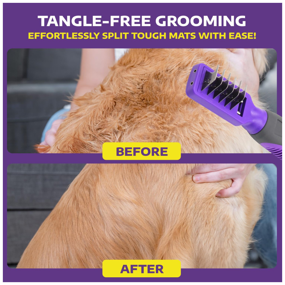 CONFORTÁVEL, FORTE E DURÁVEL Nosso removedor de nós é especialmente projetado com uma pega confortável e antiderrapante que evita tensões nas mãos e nos pulsos, não importa por quanto tempo você penteia seu animal de estimação