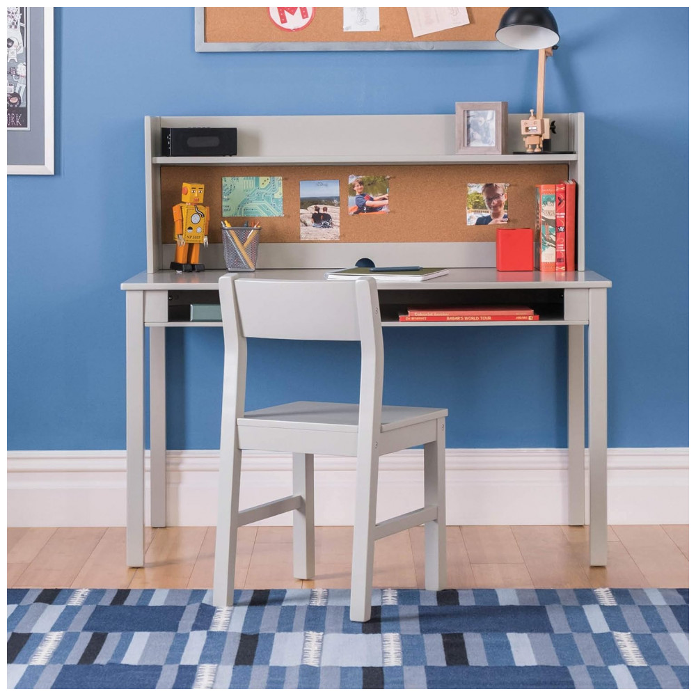Escrivaninha infantil Martha Stewart Living & Learning cinza com hutch nichos e cadeira em madeira para estudo e tarefas