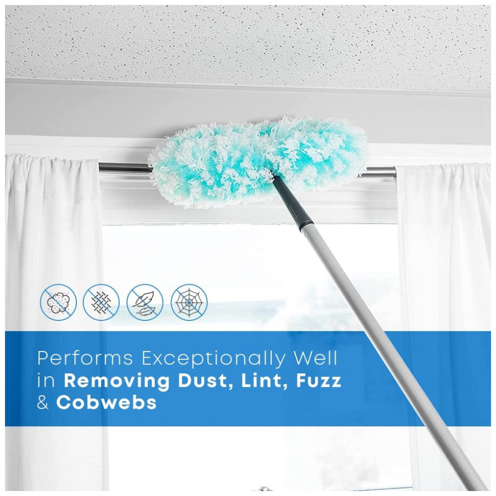 Alça Extensível Quer alcançar outros lugares altos, como tampos de portas, tetos, estantes e marcenaria O espanador está disponível com ou sem alça de aço telescópica ajustável da Fuller para fornecer a você um alcance adicional de 132 centímetros.