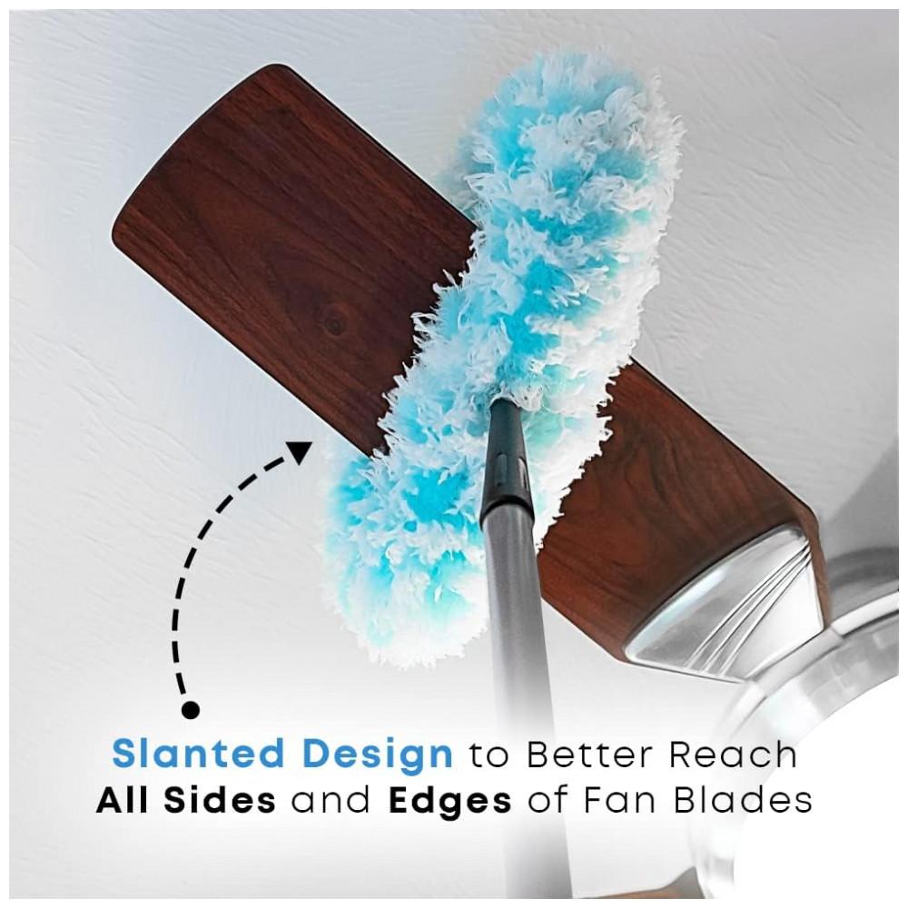 Design Premium O Fullers Fuzzy Fan Duster é inclinado para alcançar melhor todos os lados e bordas das pás do ventilador para uma limpeza melhor e mais completa. Além disso, o design desliza sobre as pás do ventilador e permanece no lugar em vez de perseguir as pás.