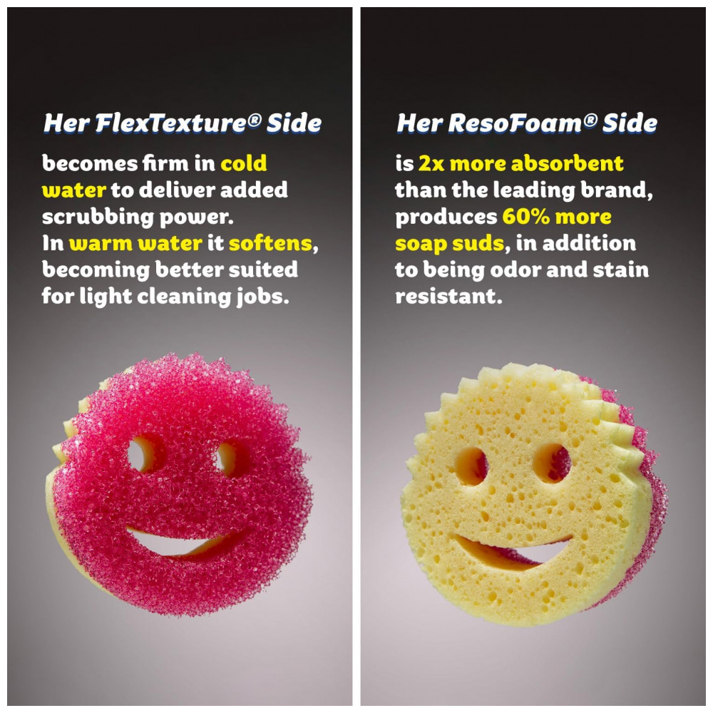 Esponja Resistente para Alta Limpeza Anti Odor 3 Unidades SCRUB DADDY Scrub Mommy Dual Sided Sponge with Sof Amarelo