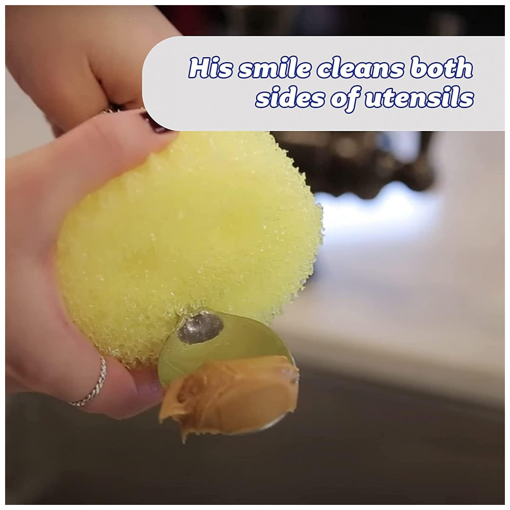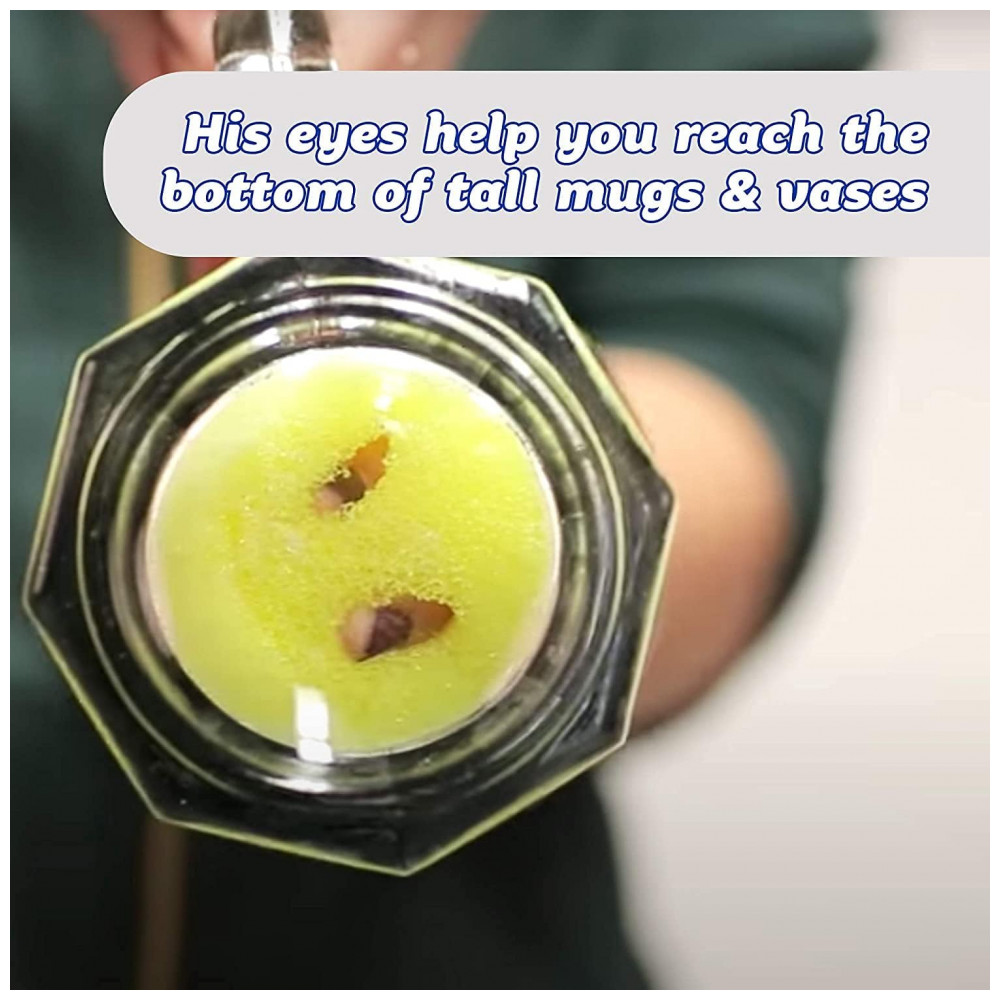 ERGONÔMICO E FUNCIONAL Projetado para caber confortavelmente em sua mão, proporcionando boa aderência e cobertura para que você possa gastar menos tempo esfregando. Com um design tão fofo E funcional, é difícil não sorrir de volta. Seus olhos se fixam em você para um alcance de 360 graus e a boca limpa os dois lados de seus utensílios