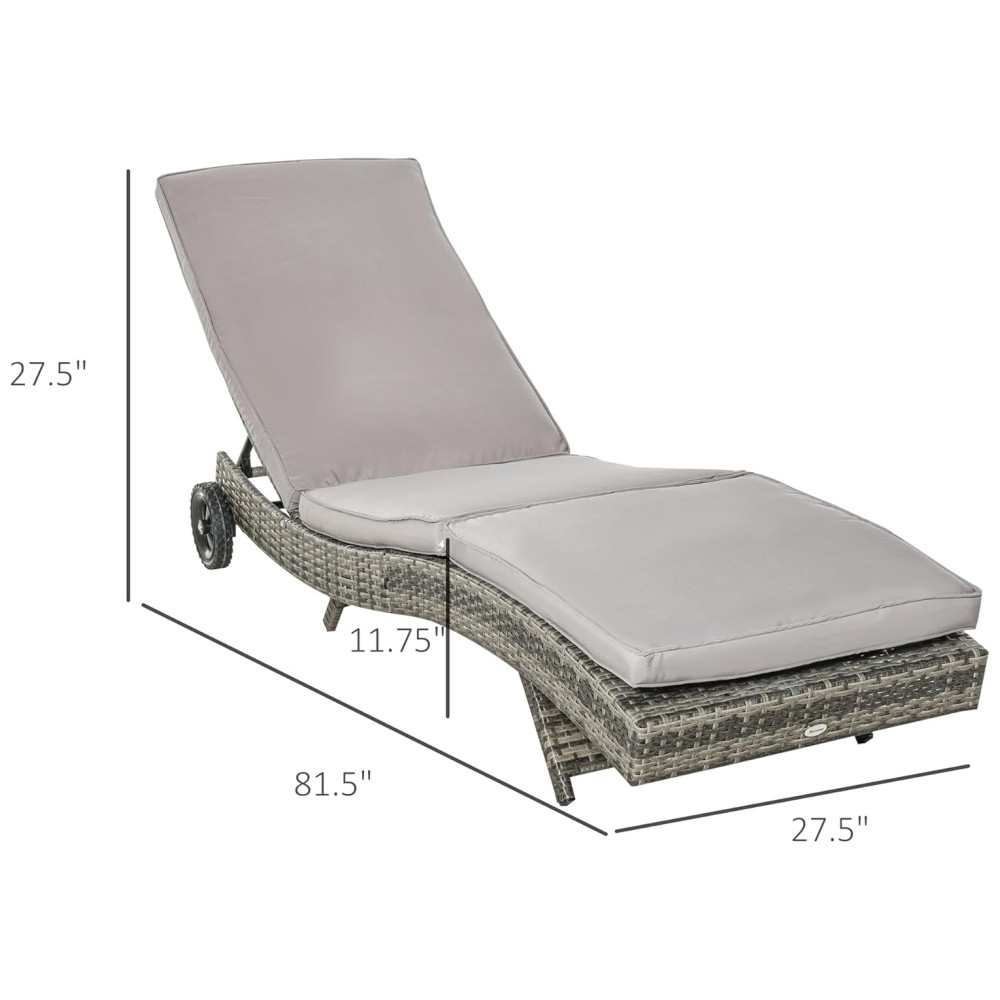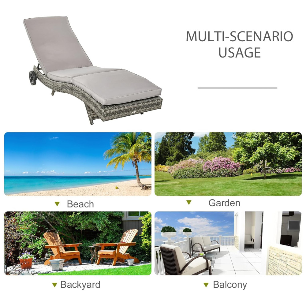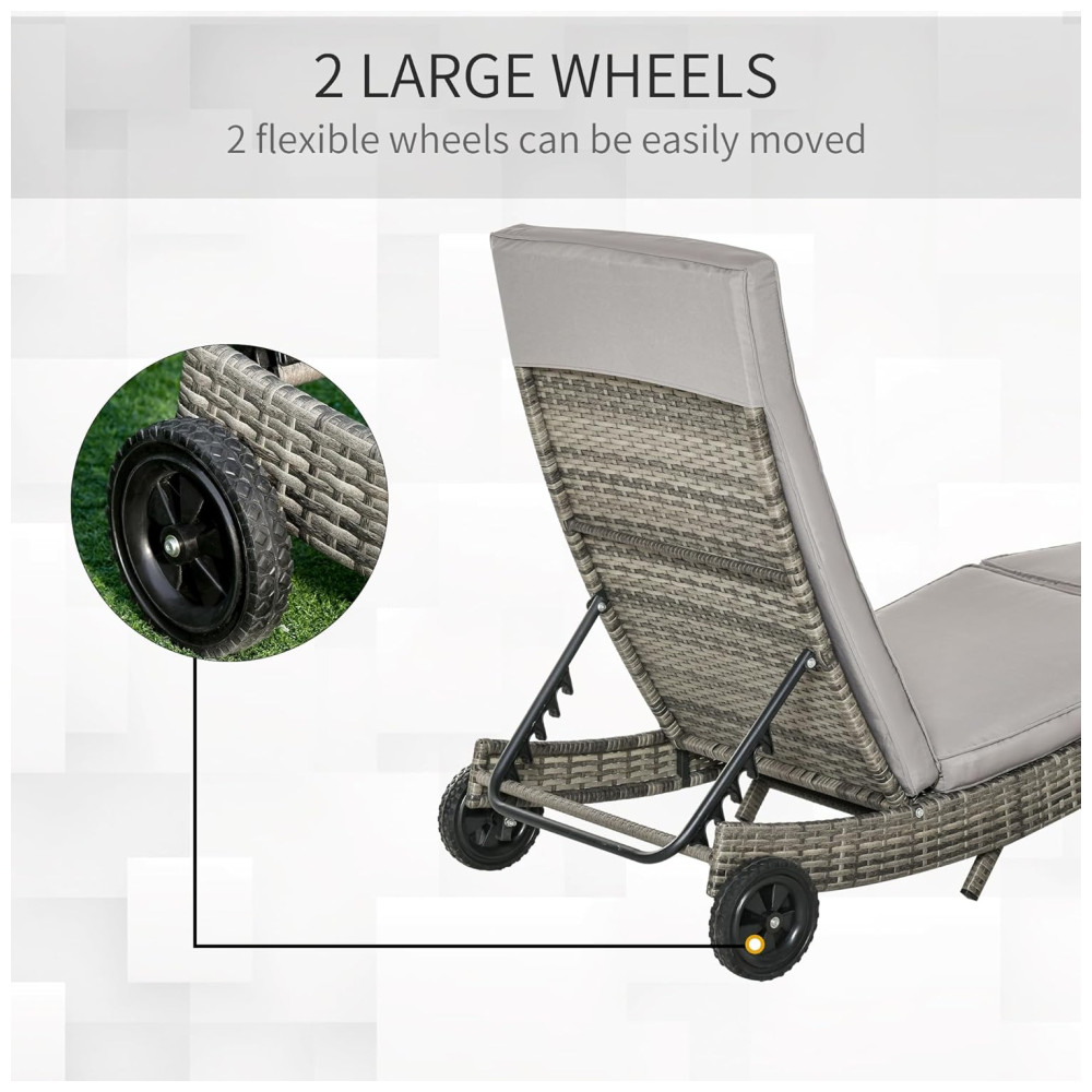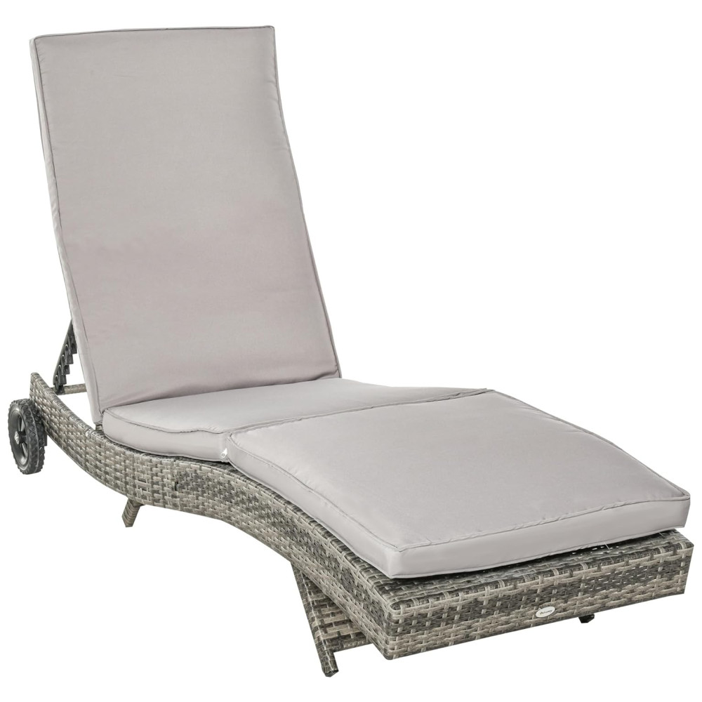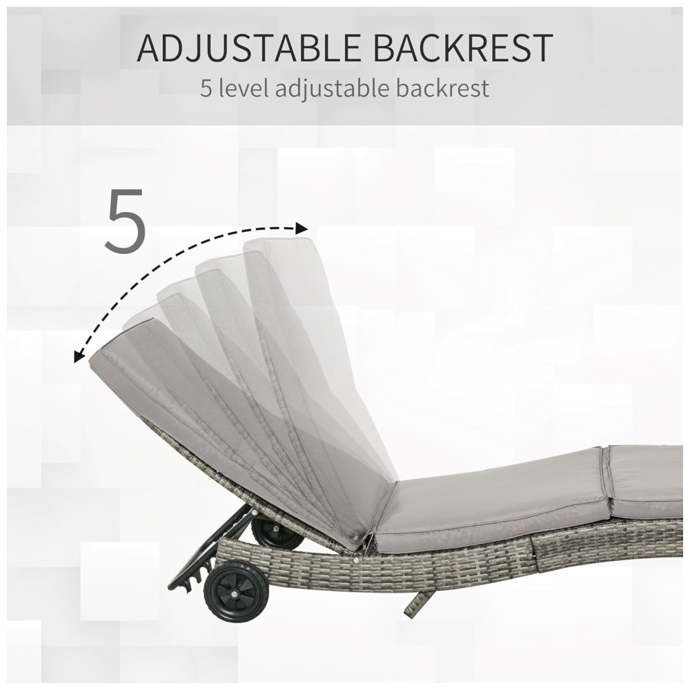 Espreguiçadeira de Vime para Piscina Rattan PE com Almofada Encosto Ajustável em 5 Níveis e Rodas para Fácil MovimentaçãoOutsunny Cinza