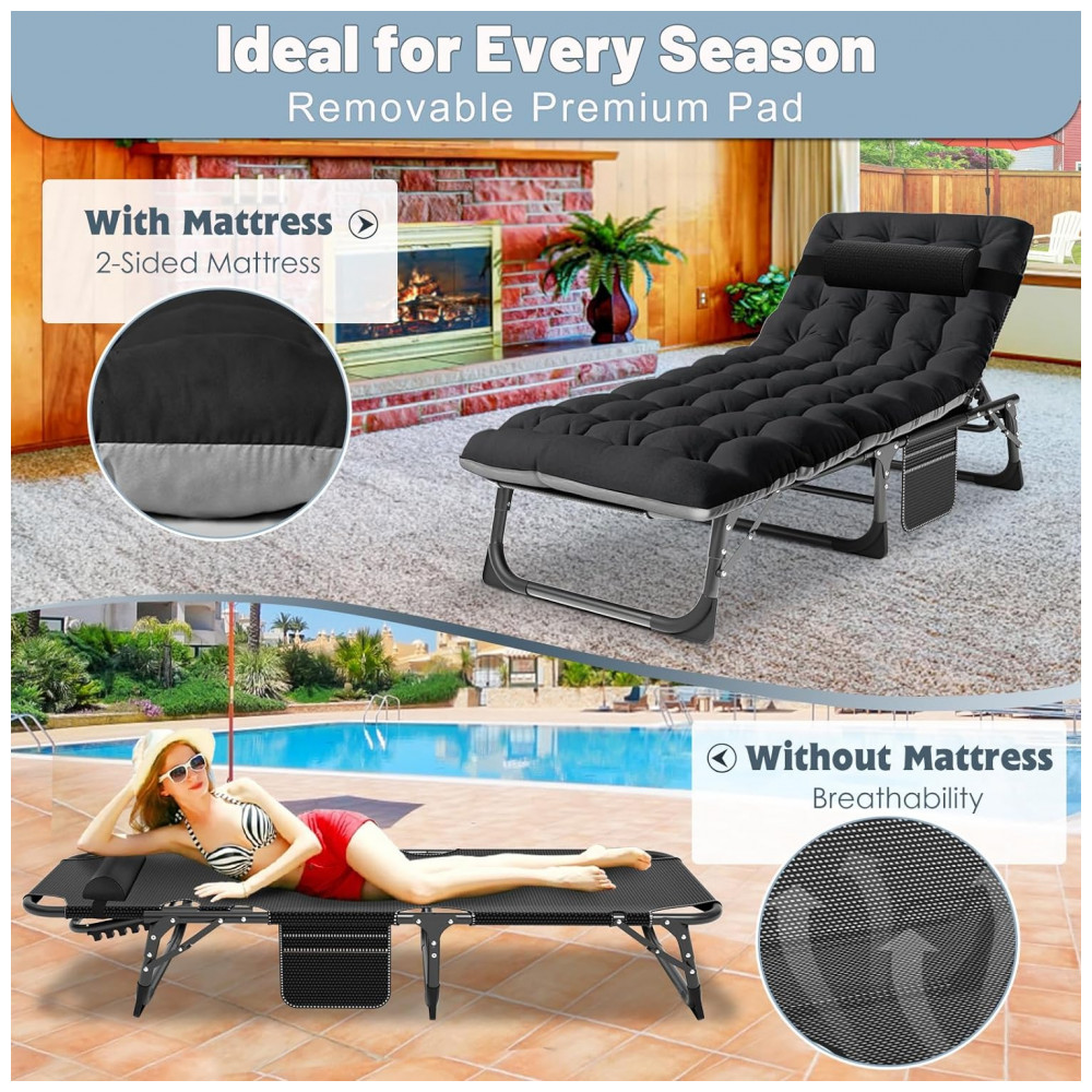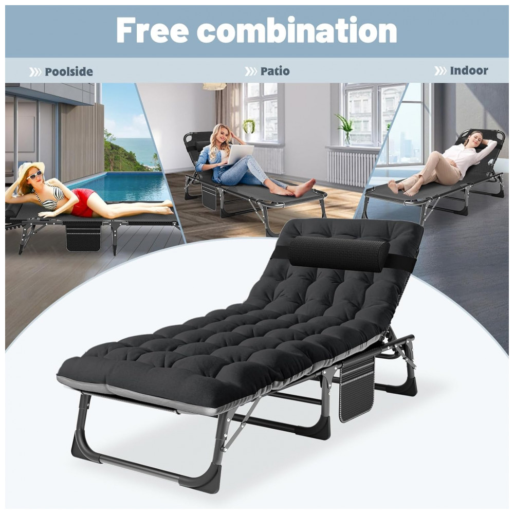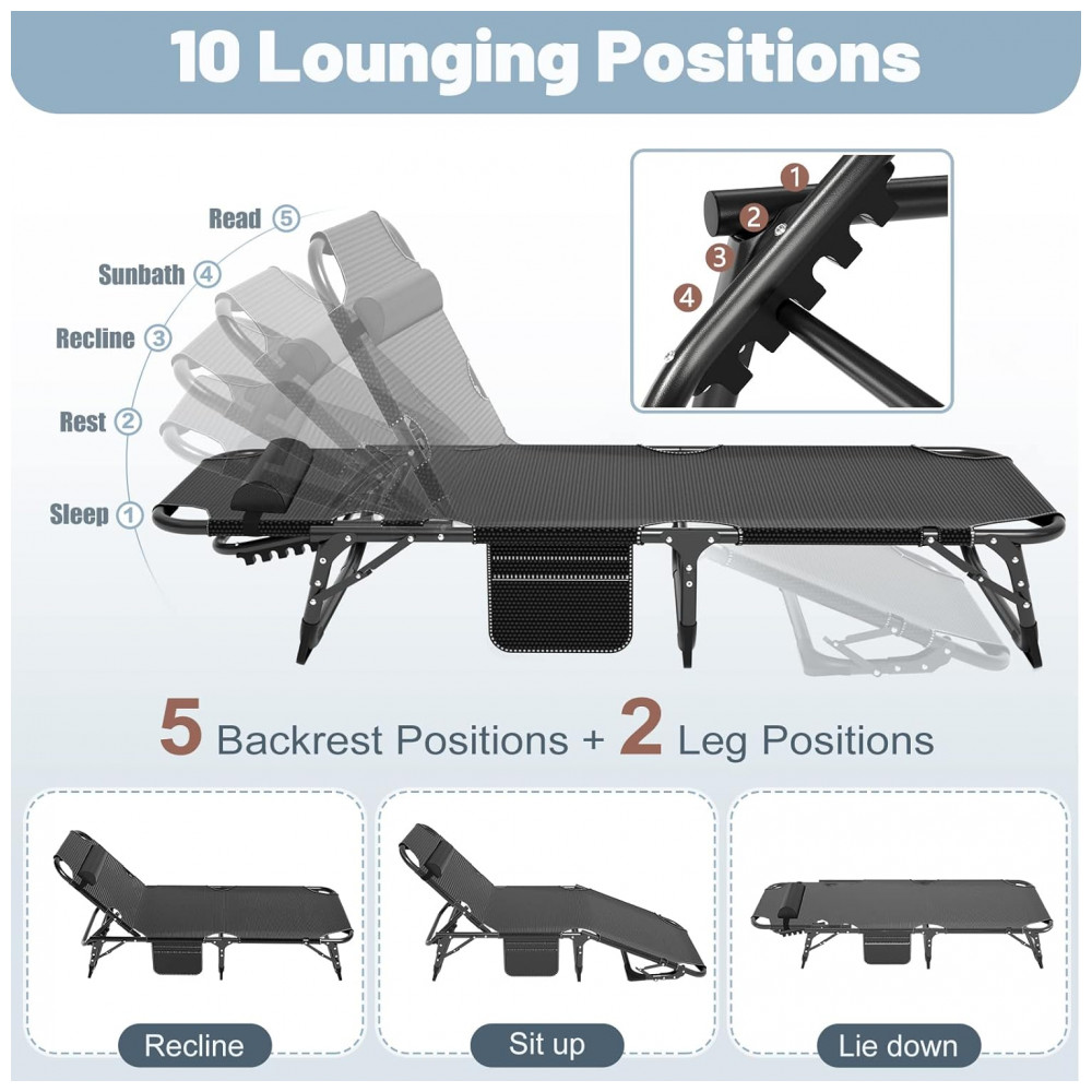 Espreguiçadeira Dobrável Portátil com 5 Posições para Jardim Gramado ou Piscina Slsy Preta