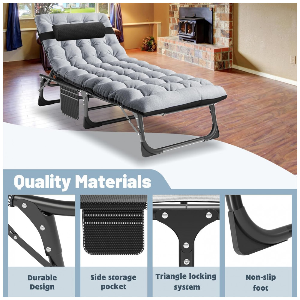 É fácil de guardar e transportar. As dimensões do berço dobrável ajustável são 191 x 68 x 30 centímetros, tamanho embalado: 76 x 66 x 25 centímetros. Perfeito para relaxar no pátio ou na praia, ou como cama para dormir durante o acampamento.