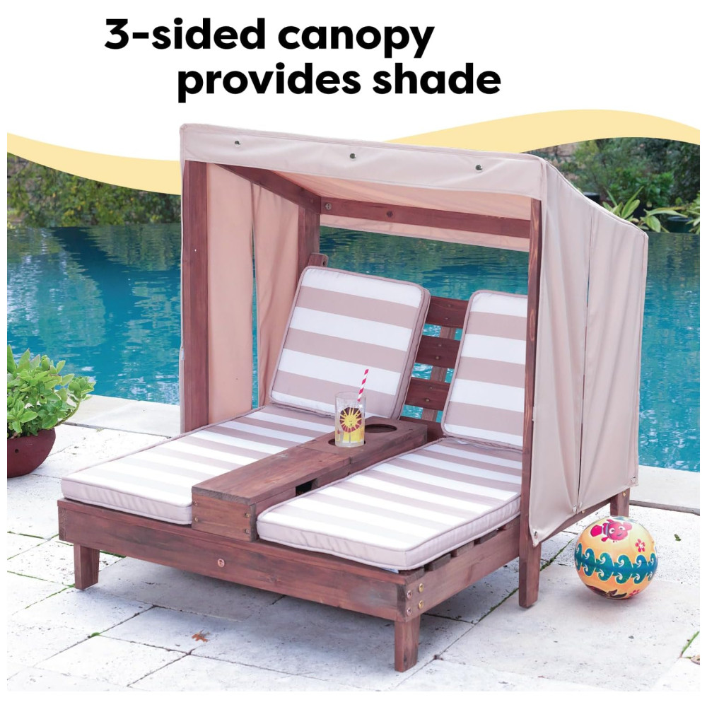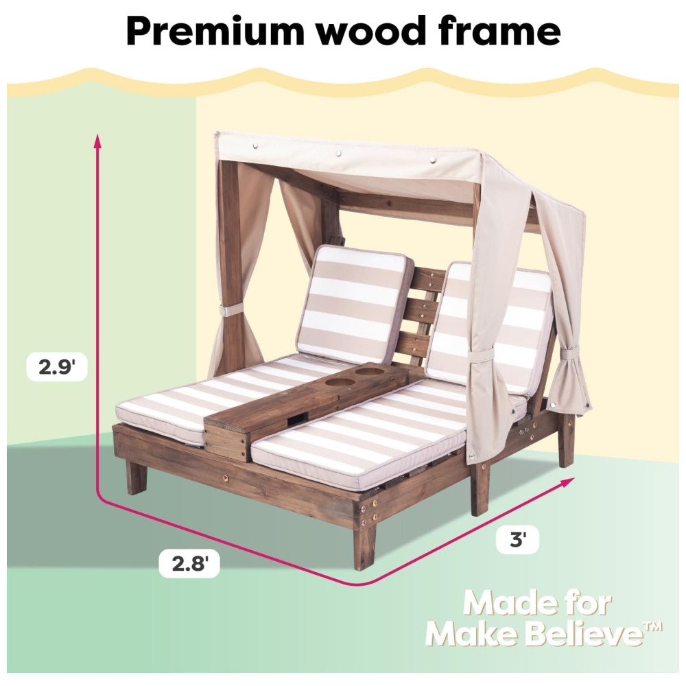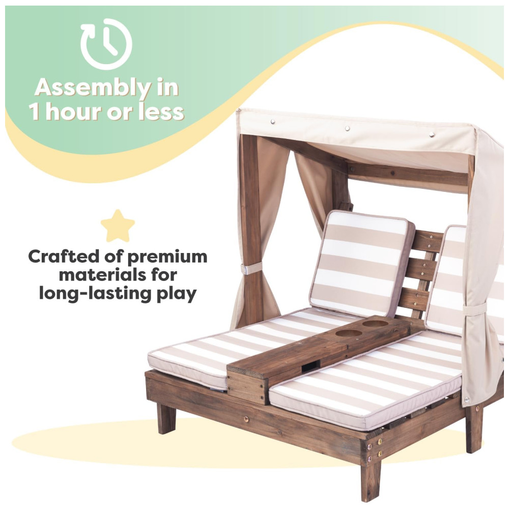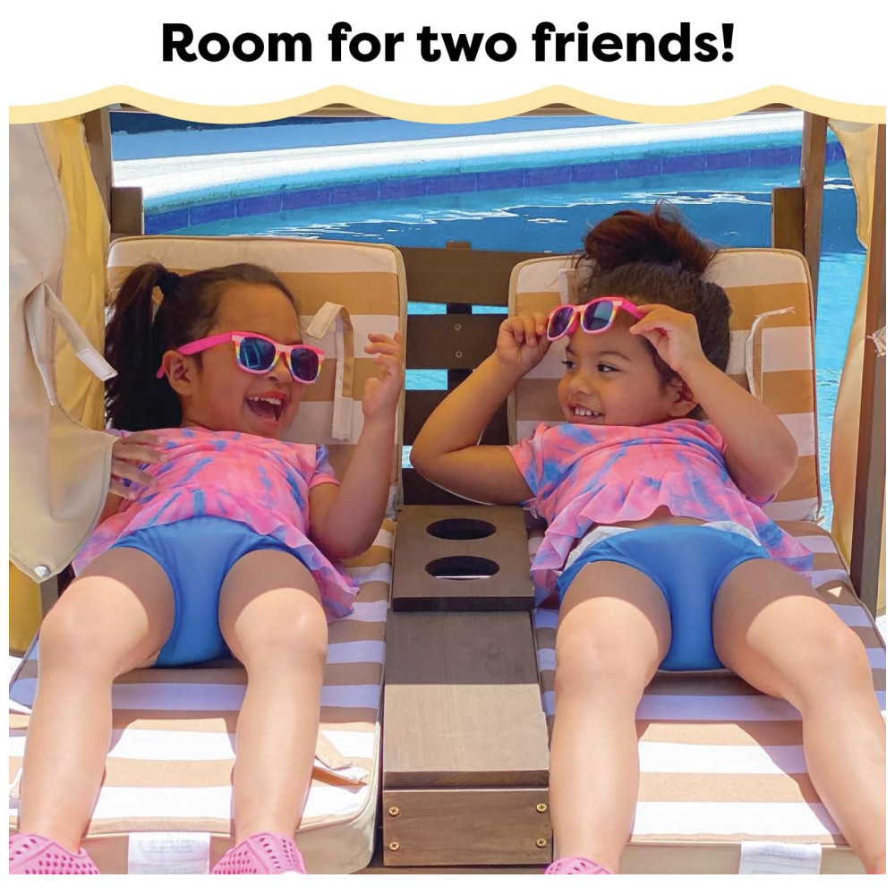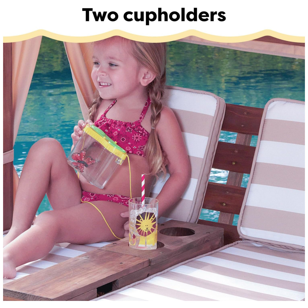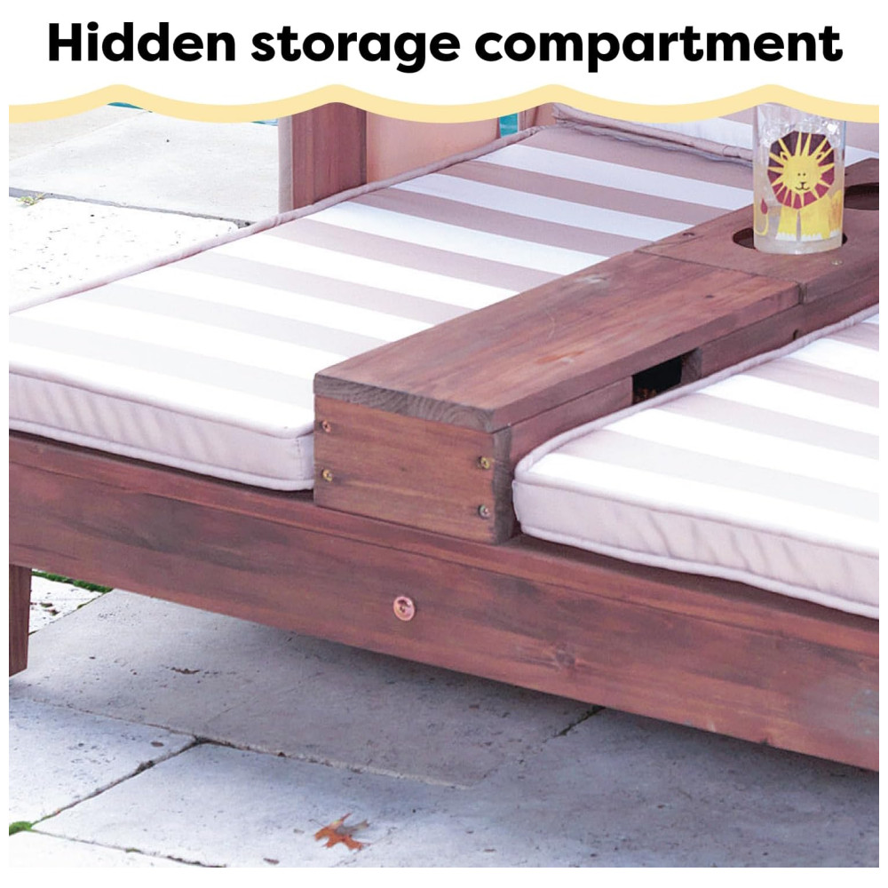 Espreguiçadeira Dupla de Madeira para Exterior com Porta-Copos Móveis de Pátio para Crianças ou Pets KidKraft