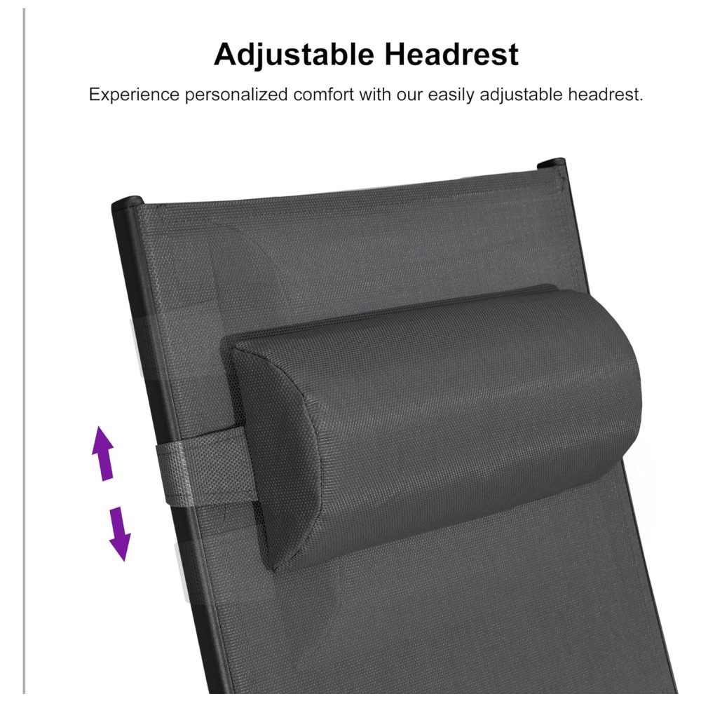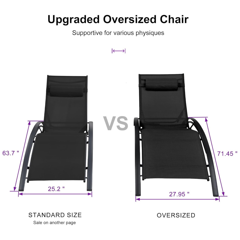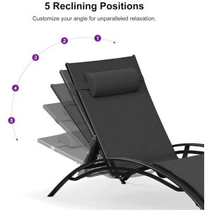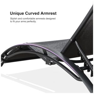Espreguiçadeiras Grandes com Mesa Lateral Cadeiras Reclináveis Ajustáveis para Piscina e JardimPURPLE LEAF Preta