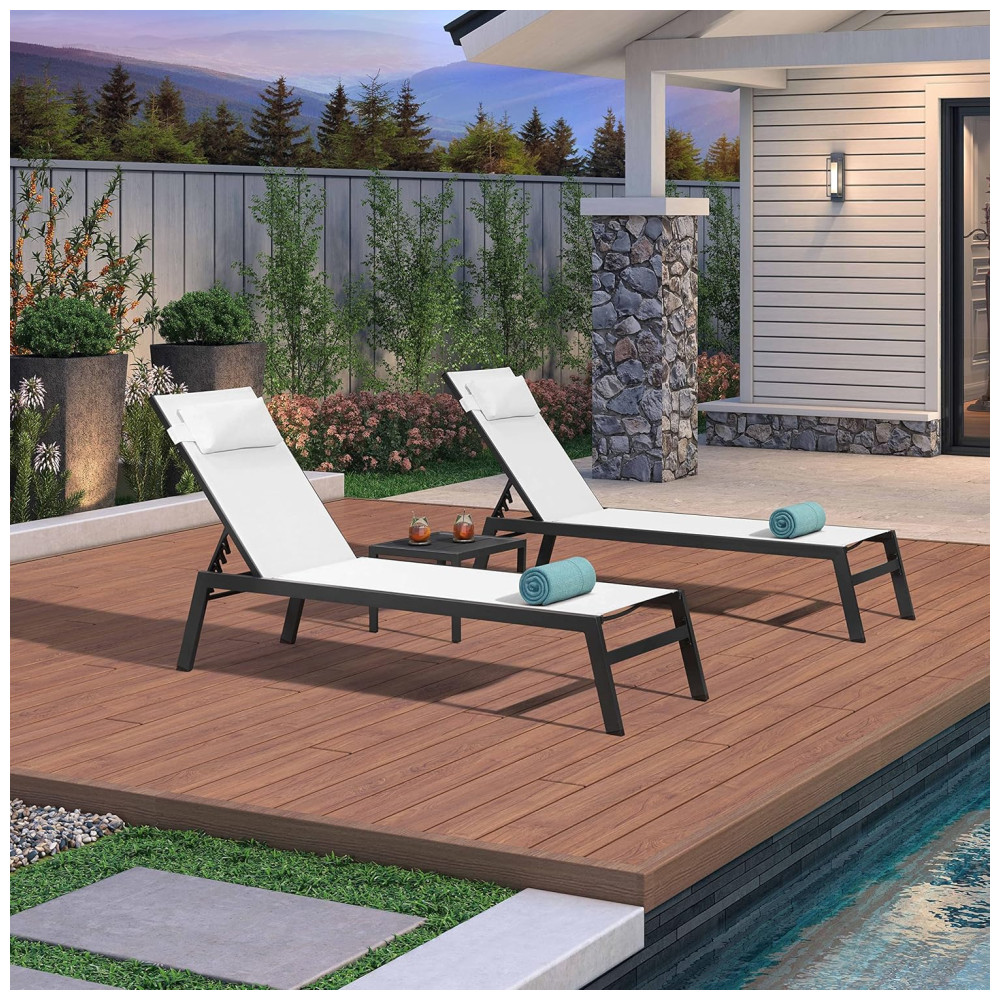Espreguiçadeiras para Jardim em Alumínio com Mesa Lateral e Almofada Reclináveis para Piscina e Praia PURPLE LEAFBranco