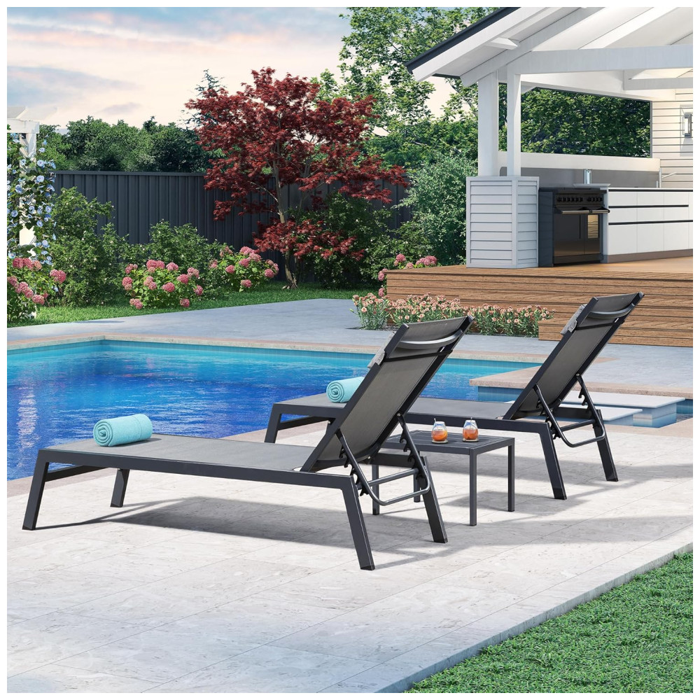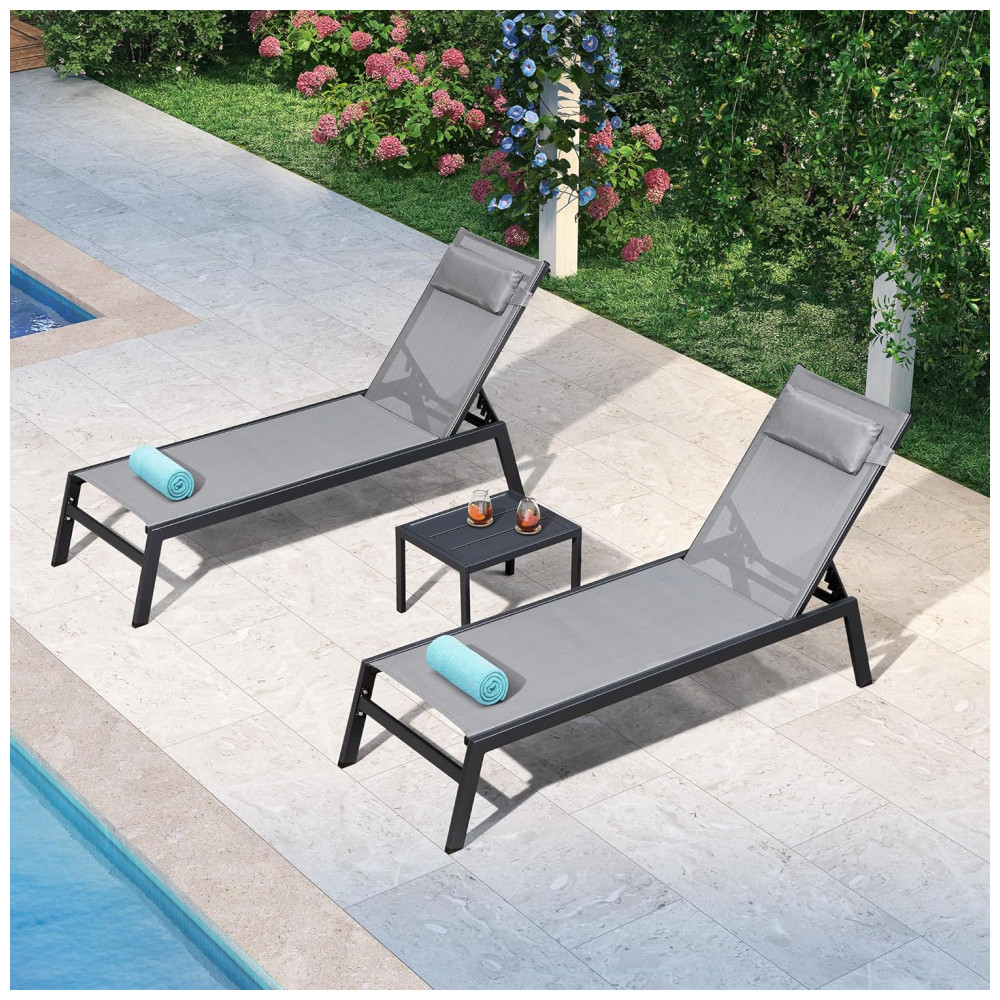 Espreguiçadeiras para Jardim em Alumínio com Mesa Lateral e Almofada Reclináveis para Piscina e Praia PURPLE LEAFCinza