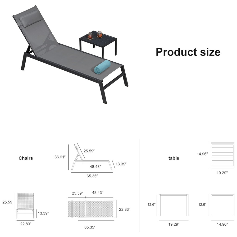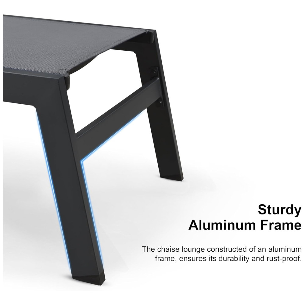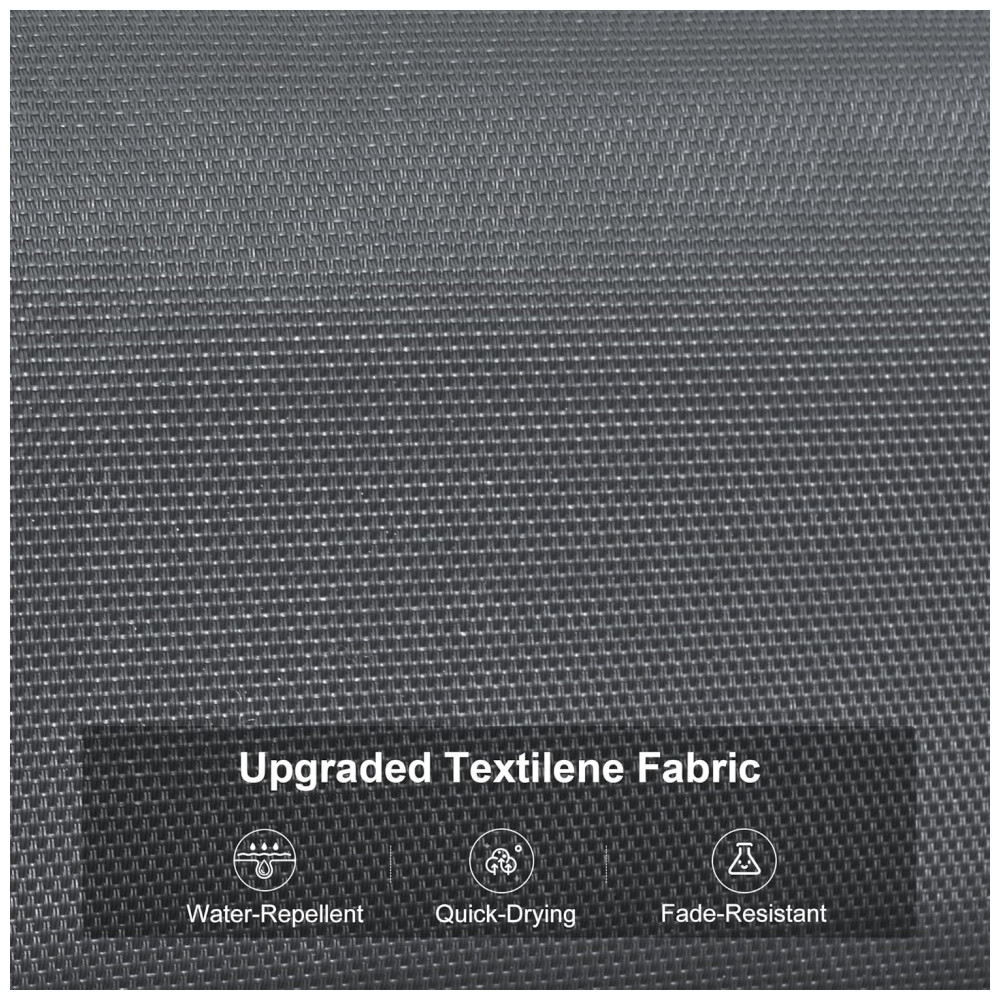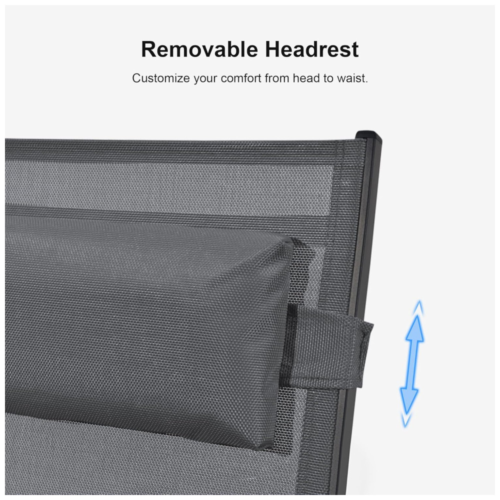 A espreguiçadeira é feita de alumínio com revestimento, tornando a resistente às intempéries e à ferrugem para uso duradouro. As pernas possuem almofadas antiderrapantes na parte inferior para aumentar a estabilidade e segurança. O tecido Textilene atualizado é mais resistente aos raios UV, resistente ao desbotamento e de secagem rápida do que o tecido comum. A superfície resistente ao desgaste não requer manutenção frequente. A poltrona reclinável tem 5 posições ajustáveis para atender às suas necessidades e proporcionar uma experiência confortável. O travesseiro removível pode relaxar totalmente o pescoço, os ombros ou as costas. Seu estilo minimalista adiciona um toque moderno ao ar livre. Esta espreguiçadeira é perfeita para a praia, varanda, quintal, piscina e outros locais ao ar livre.Cada poltrona tem capacidade de peso de 124,72 quilos. A montagem é simples, com instruções claras e todo o hardware necessário incluso.