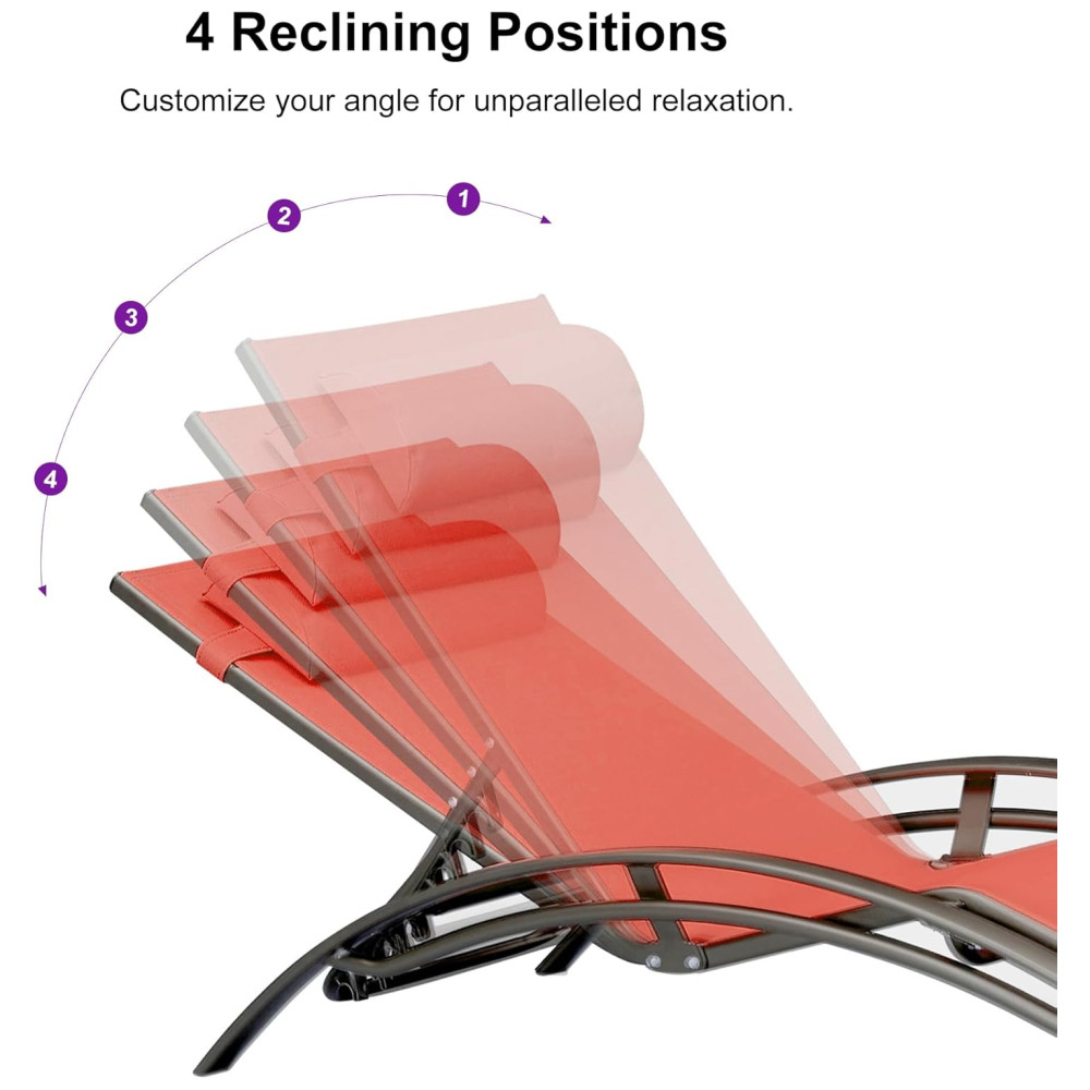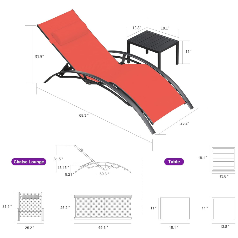 Espreguiçadeiras para Jardim Praia e Piscina com Mesa Lateral Cadeiras Reclináveis para Todas as Condições ClimáticasPURPLE LEAF Vermelho Coral