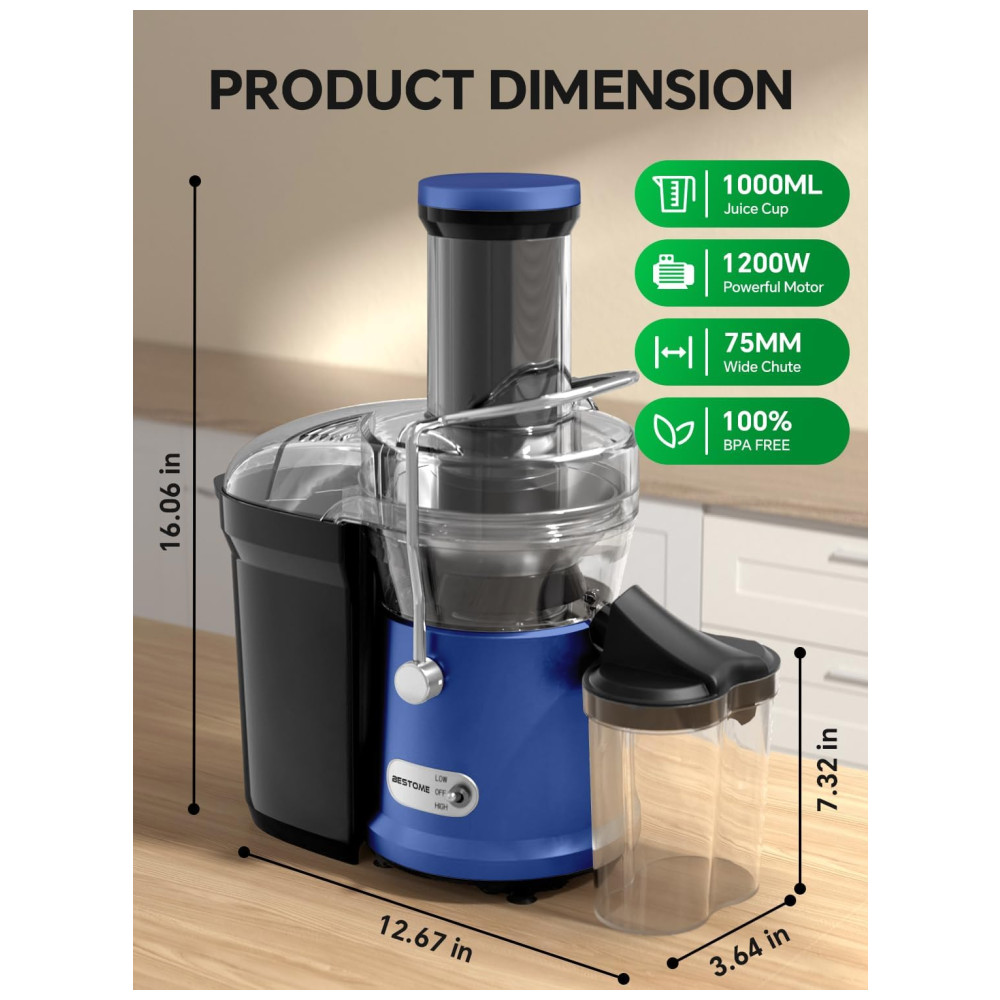 Espremedor de Frutas Bestome 1200W com Abertura de 76cm para Frutas Inteiras Centrífuga Dupla Velocidade Motor de Cobre Eficiente e Potente