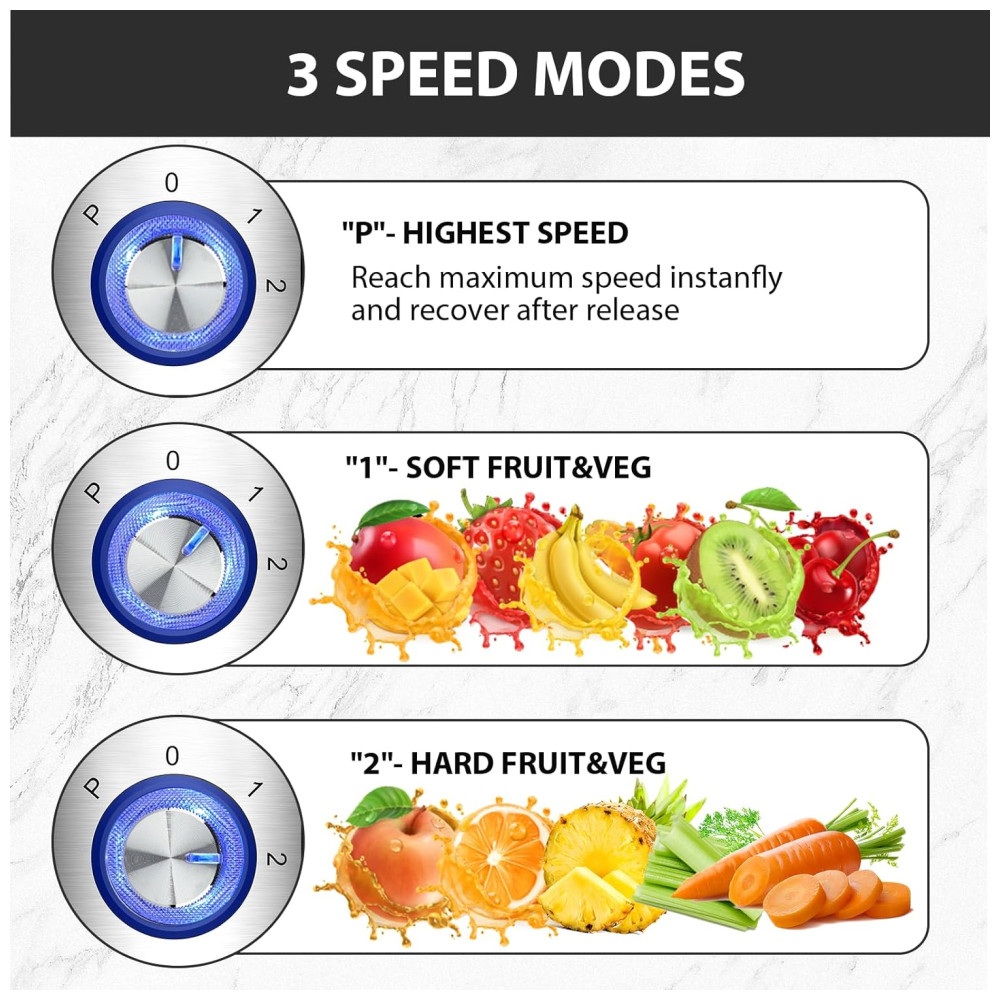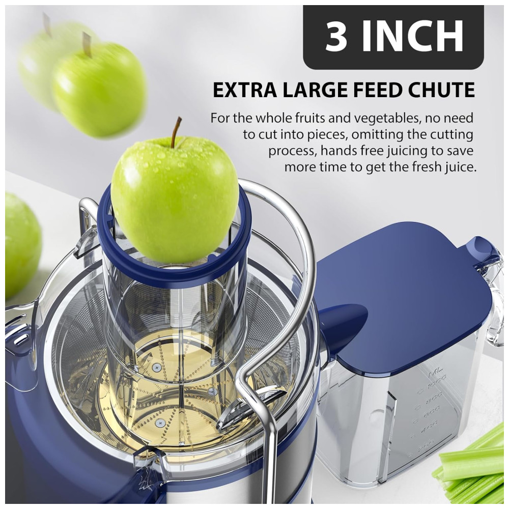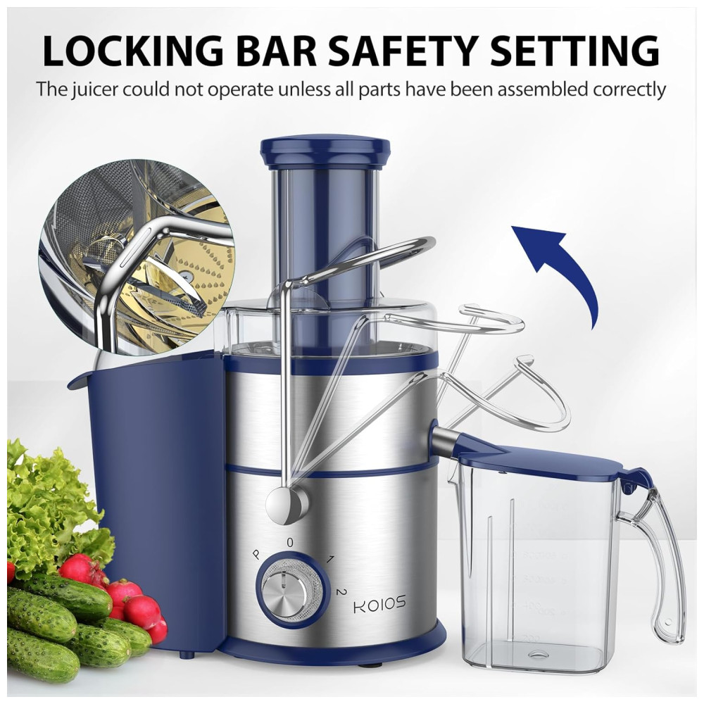 Desfrute de sucos frescos e saudáveis em questão de segundos com o poderoso motor de cobre puro de 1300W do extrator de suco KOIOS. Com um bocal de alimentação extra grande , é possível extrair suco de frutas e vegetais inteiros, economizando tempo no preparo. Com 3 velocidades diferentes, incluindo uma para frutas mais macias e outra para vegetais mais duros, você terá flexibilidade total. O filtro de aço inoxidável revestido com titânio garante alta eficiência na extração de suco, proporcionando suco em segundos, com menos clogging e espuma. Além disso, o extrator possui uma grande capacidade, com um copo de suco e um recipiente de polpa , ideal para compartilhar com a família e amigos. Com design de segurança e proteção contra superaquecimento, é fácil de limpar e usar, sendo todos os materiais livres de BPA.