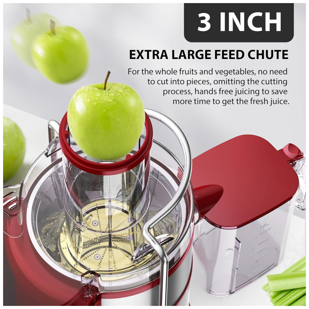 Desfrute de sucos frescos e saudáveis em questão de segundos com o poderoso motor de 1300 watts do extrator de suco da KOIOS. Com alto rendimento de suco, produz 75% a mais de suco e 60% mais vitaminas e minerais. Possui 3 modos de velocidade para se adaptar a diferentes tipos de frutas e vegetais. A entrada extra larga de 3 polegadas permite inserir frutas inteiras, sem a necessidade de cortar. O filtro em aço inoxidável com revestimento de titânio garante alta eficiência na extração, sem entupimentos ou espuma. Com capacidade para suco e recipiente para polpa, é perfeito para compartilhar com a família e amigos. Design seguro com travamento de segurança e proteção contra superaquecimento. Fácil de limpar, todas as peças são de qualidade culinária e livres de BPA. Acompanha escova para facilitar a limpeza.