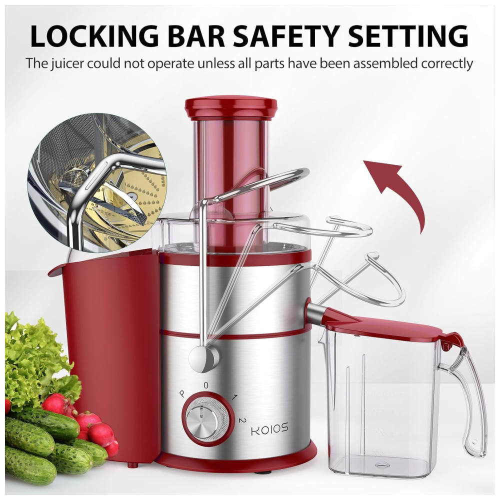 Espremedor de Frutas Centrífugo KOIOS 1300W com Motor de Cobre Total Filtro Titânio Alta Produção de Suco 3 Velocidades Bocal Extra Largo